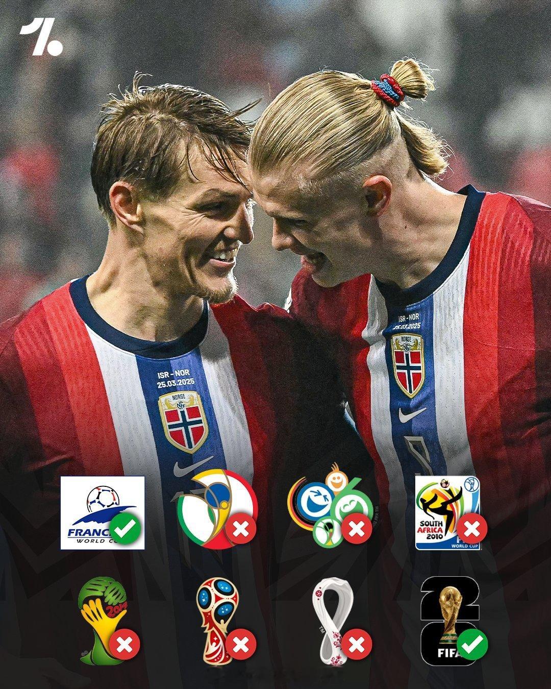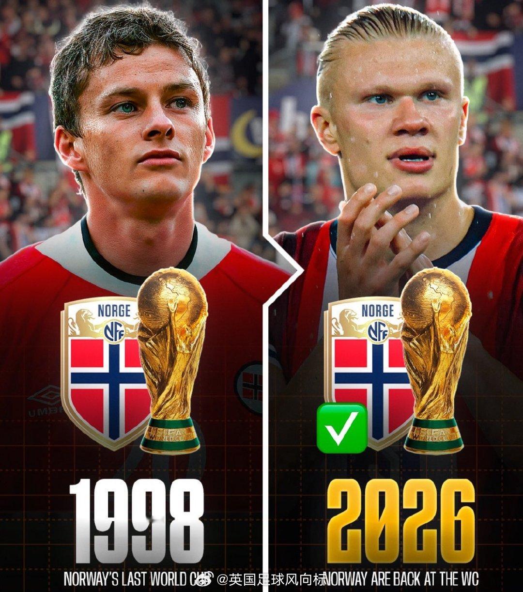 挪威世预赛8战全胜,力压意大利拿到小组头名,成功晋级2026世界杯,哈兰德职业生涯将首次参加世界杯。挪威上一次出战世界杯已经是28年前的事情,1998年法国世界杯,他们与巴西、摩洛哥和苏格兰同组。最终1胜2平,以小组第二身份晋级16强,在16强战0-1不敌意大利,结束世界杯征战。