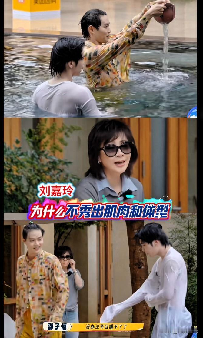 刘嘉玲:你们怎么不秀出肌肉和体型 邵子恒穿着衣服在游泳池里游泳,衣服浑身湿透,紧紧贴在身上,刘嘉玲似感疑惑的问道:“你们怎么不秀出肌肉和体型?” 上岸后的邵子恒无奈一笑:“没办法,不然节目播不了。 言外之意,不是我们不想秀,是现在节目审核严,腹肌人鱼线容易引发过度关注。为了符合节目播出标准,避免被归为“视觉刺激”内容,咱们还是穿着游更稳妥,安全第一嘛。邵子恒