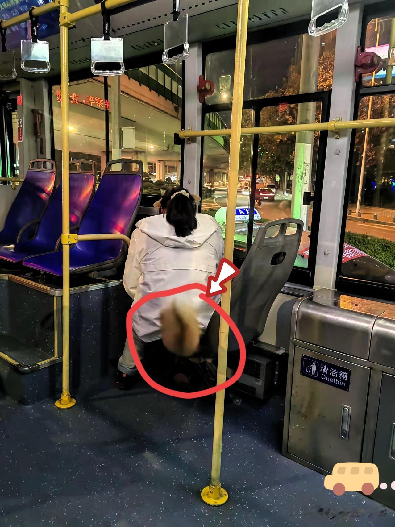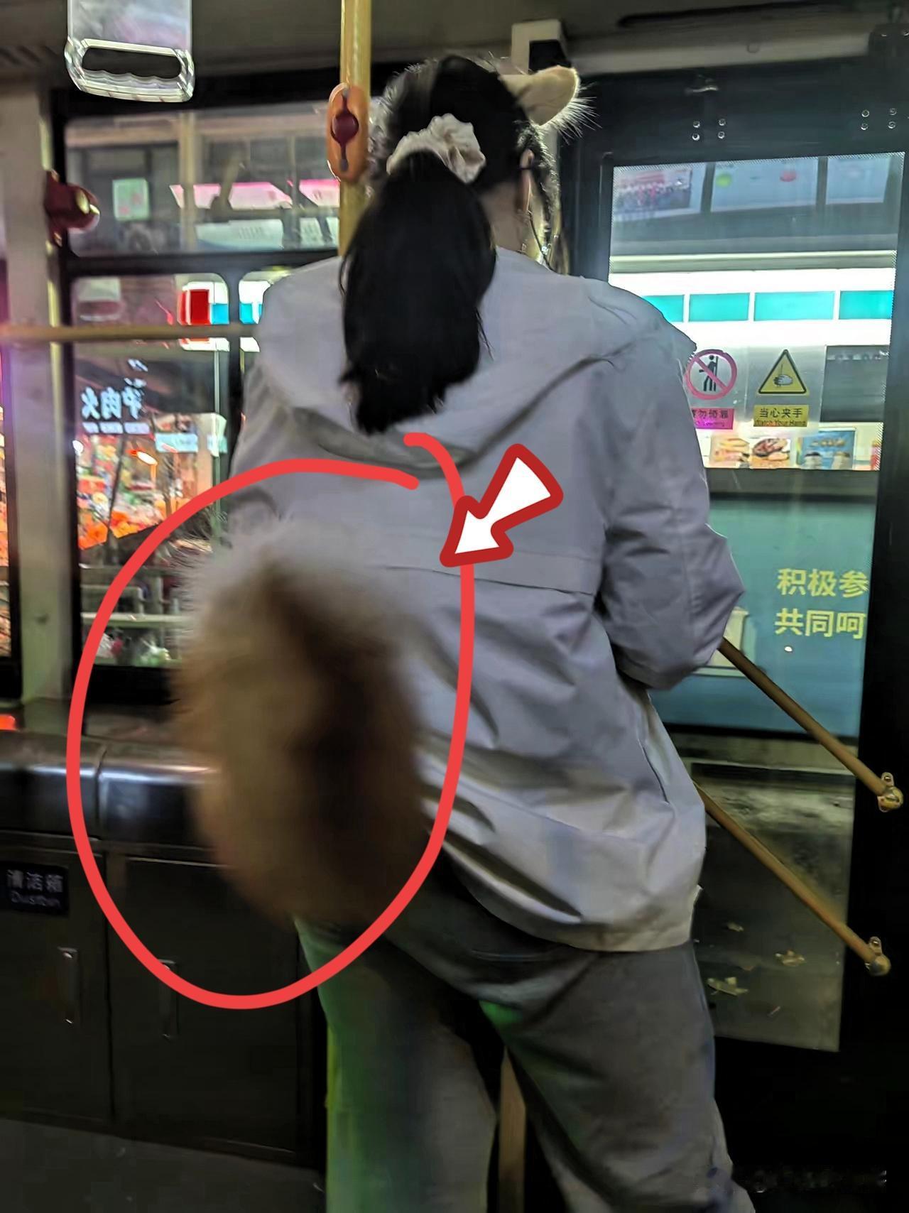 青岛公交车上惊现“狐狸尾巴” 本来公交上大家都低头刷手机, 突然前排一阵小声偷笑, 顺着目光看过去, 一个小妹妹侧身坐着, 屁股底下居然甩着一条毛茸茸的狐狸尾巴,一摇一晃的,又萌又搞笑! 旁边的大哥大姐憋笑憋得肩膀都抖, 好几个人偷偷举着手机拍, 我也没忍住跟风咔嚓了两张,实在太吸睛了~