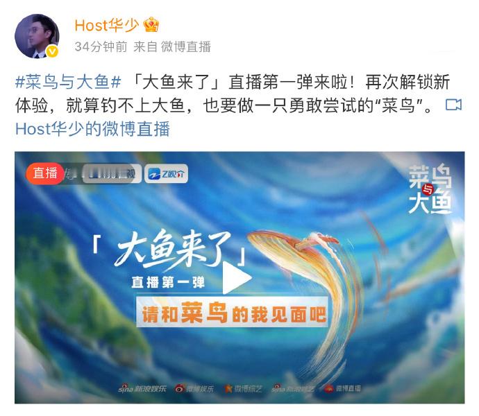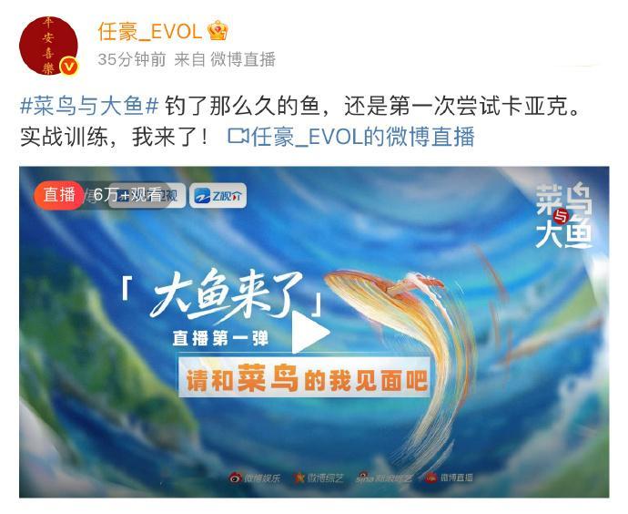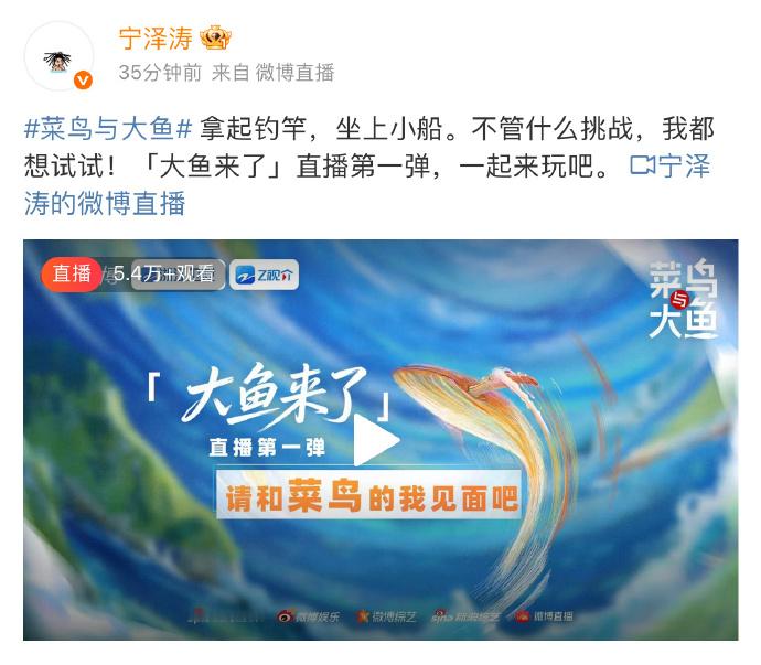 华少、宁泽涛、徐斌、任豪、谢可寅组成“菜鱼家族”在直播里钓鱼,咱就说这个直播已经开始了这样的模式了,那就坐等和各位钓上的大鱼的见面啦~