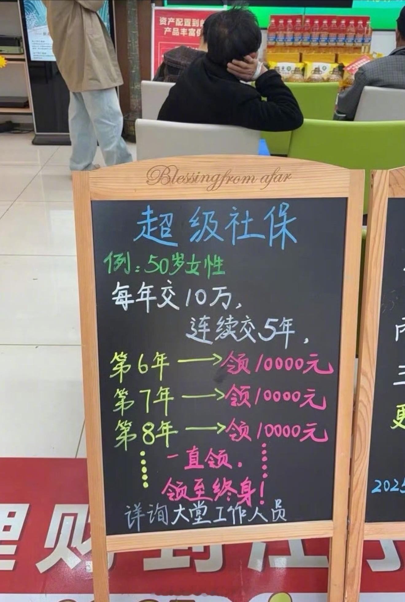 超级社保,每年交10万,连续交5年!第6年开始每年领1万,领到终身!算了算,怎么感觉像诈骗
