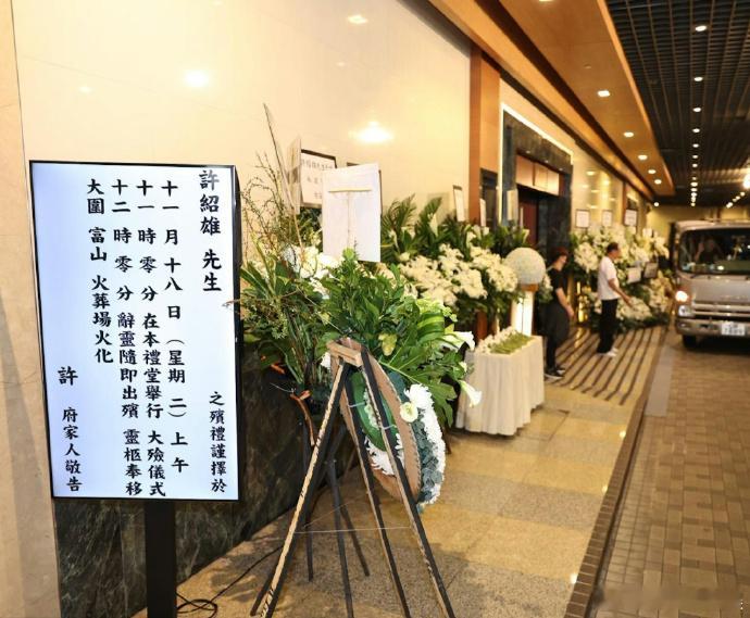 据港媒,许绍雄丧礼于今日在大围宝福纪念馆地下宝福堂举行,次日上午将举行大殓仪式并随即出殡。众多圈中好友纷纷送上花牌,以表达深厚情谊与无限怀念。其中包括古天乐、成龙、林峯、郑裕玲、吴彦祖、苑琼丹、宣萱、钱嘉乐、苏永康等。