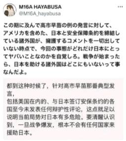 这些天,日本有点失望了?有日本网友声称,中日闹纠纷,没有见一个盟友来帮日本说话,也就是说,没有一个国家愿意支持日本,特别是美国。 这话戳中不少日本人的心思,底下跟帖全是附和的。   此番吐槽绝非空穴来风,11月11日于联合国第三委员会上演的一幕,便是鲜活例证,将相关状况真实呈现,令人感慨。当时西方八国事先串通好,想在人权问题上给中国找茬,日本本来以为能借这股势头压一压,结果呢?英国和澳大利亚发言时确实照着稿子念了几句,但全程没提“支持日本”,更没敢把话题往中日纠纷上引。   中国代表当场就反问回去,点着英国的名说系统性种族歧视问题,又提澳大利亚军人在海外的不良记录,句句都有实据。这时候再看日本的那些“盟友”,一个个都低着头翻文件,没一个站出来帮日本说句话。日本代表如坐针毡,在发言时,声音相较于他人明显喑哑微弱,那底气不足之态,尽显于这低低的语调里。   最让日本网友寒心的还是美国。按说美日是多年的盟友,可真到关键时候,美国的算盘打得比谁都响。就拿去年中日在经贸领域有分歧那回说,日本跑去跟美国诉苦,希望美国能在贸易政策上偏向自己。美国嘴上说“支持日本”,转头就派了个庞大的经贸代表团来中国谈合作,签的订单金额比美日当月贸易额还高。   有人可能会问,美国为啥不帮日本?说白了就一个字:利。美国跟中国的贸易往来太频繁了,光去年一年,两国货物贸易额就突破6000亿美元。要是为了帮日本得罪中国,美国农场主的大豆、科技公司的芯片都得滞销。换你是美国决策者,你会为了“盟友情面”赔本赚吆喝吗?   英国和澳大利亚的心思也差不多。英国这两年一直想跟中国深化金融合作,伦敦作为离岸人民币中心,靠中国业务赚了不少钱。真要跟中国闹僵,损失的是真金白银。澳大利亚更不用说了,2025年3月那回,它本想跟着美国对华搞限制,结果自家矿产卖不出去,最后还是悄悄派代表团来谈合作,才算解了围。有过这教训,它哪敢再随便掺和中日的事?   日本自己也有点“拎不清”,总想着靠盟友撑场面,却没搞明白盟友关系的本质。它一边喊着要美国支持,一边又不想完全跟着美国的节奏走。就像美国要搞芯片限制,日本嘴上答应,暗地里还偷偷给本国企业开绿灯,让它们跟中国保持合作。这种两头摇摆的态度,盟友看在眼里,自然不会真掏心掏肺。   咱们换个角度想,要是日本真遇到事,这些盟友会不会出手?答案是肯定的,但得看有没有好处。当年日本福岛核事故,美国倒是派了航母去,可转头就以“防止核辐射”为由,把航母开到离日本本土几百公里外的地方,美其名曰“待命”,实际上就是怕沾麻烦。这种“支持”,跟没支持有啥区别?   其实国家之间的关系,从来不是靠“兄弟义气”维系的,更像是搭伙做生意,有共同利益才会凑到一起。中国从来不说谁是自己的“盟友”,但周边国家跟中国合作得都挺愉快。   日本网友的吐槽,本质上是没看清国际交往的真相。总想着靠别人撑腰,不如自己踏踏实实搞合作。你看中国,不管跟哪个国家打交道,都讲究平等互利,从不强迫别人选边站。这样一来,就算有分歧,大家也能坐下来谈,不用指望谁来“帮衬”。   日本要是真想在国际上有话语权,与其指望别人帮忙,不如好好想想怎么跟包括中国在内的国家搞好合作。毕竟,靠实力说话、靠诚意待人,比啥“盟友”都管用。你觉得日本要是改变策略,跟中国深化合作,会比靠盟友更靠谱吗 参考信息: 新派新闻——2025-11-16日本被4国痛批 特朗普划清界限 :“很多盟国也称不上是朋友,我与中国的关系很好”