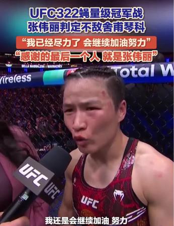 输了比赛,却赢了格局。张伟丽这次跨界挑战,虽败犹荣。 比赛的最后哨声在场馆里回响,瓦莲京娜·舍甫琴科拿下了胜利,赛后她轻描淡写地说张伟丽没能给她太多压力。 而在另一边,张伟丽给妈妈打电话时眼圈发红。一个在赛场上是一句话定江山,另一个在后台里终于卸下坚强,让所有关注这场比赛的人都能感受到背后的压力。 比赛现场,那十三分钟的地面缠斗成了张伟丽最难熬的时刻。每当她刚找到出手机会,还没等节奏打起来,对手就一个贴身动作把她拖到了地上,不管她怎么挣扎,都摆脱不了对方的重量和控制。 张伟丽拿手的爆发力被牢牢锁死,她试了很多次想站起来,但对手总能一次次用更强的力量压下去,让她在地面上耗尽体力。这场比拼已经不仅是技术的较量,更多的是看谁能咬牙坚持谁更会用规则。 这次挑战之所以难,是因为张伟丽主动升了一个量级,从草量级冠军去挑战蝇量级,这里面不仅仅是体重的差别。对方力量更大,体格更壮,真正打起来,更重的选手往往能死死压着,不怎么给机会。 这类差距摆在那儿,任何技术,都像是被加了一把锁。这不是个人状态好坏能扭转的事情,而是整个比赛的大前提。 明明可以安心防守自己的金腰带,张伟丽却偏偏要去尝试更大的挑战。这决定也很简单,她没有选择最安稳容易的路,而是主动跳出来,去看看自己到底能不能更进一步。 很多人更愿意能守着现有的荣耀就行,但她却选择了更难的路,这就是她最大的不同。 虽然最后输了,但张伟丽眼里的那股劲头却没消失。她和团队在比赛中一次次调整思路,也试着做出了不少变动,还是被对手稳稳地压制住。 这场失利,倒像是给了她一次全方位的扫描,把短板和问题都清楚地摆在了面前,只要认真总结,后面就有了明确的突破口。 其实回头再看,竞技场上的成败并不是唯一的标准。张伟丽拥有的,其实已经比一场胜负更有分量。她没有躲在安全区舒舒服服地守着冠军头衔,而是选了一条最容易跌倒的路。 不怕暴露短板,敢于去迎接更大的挑战,这背后体现的不是简单的技术,是不怕输、不怕丢人的劲头。这样的精神其实比赢一次比赛要有看头,也更能激励后来的人别总想着守住已有的东西。 真正的顶尖运动员,往往敢于面对未知,哪怕明知道会输,也不回避,她选了这条难走的路,这比拿冠军还更值钱。张伟丽这次没拿下胜利,但让所有人看到了一个敢于突破自己的自己。