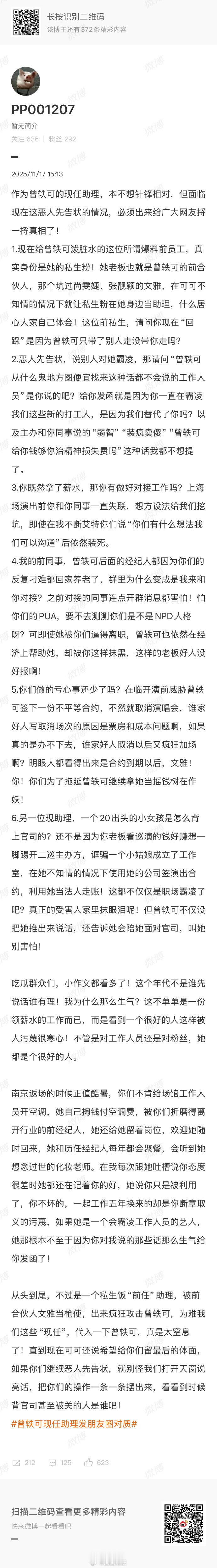 被曾轶可的工作人员力挺圈粉 [打 call]!私生爆料引发争议后,历任同事纷纷发声,赞她专注舞台、重情重义,现任助理揭穿事件真相,她的温暖从不张扬!