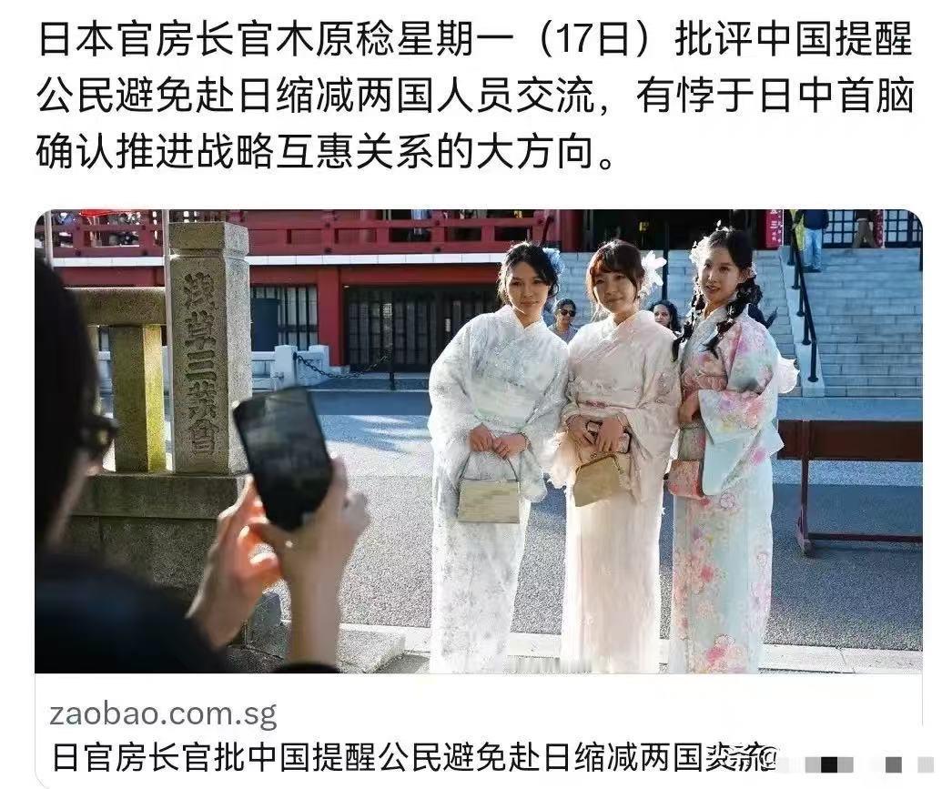 日本再次对我们进行回应!日本刚派人访华,就对我们提了一个条件!11月17日,根据外媒报道,在中国官方提醒中国公民近期避免前往日本后,日本官房长官木原稔对此进行回应了。木原稔表示,中国此举缩减两国人员交流,有悖于日中首脑确认推进战略互惠关系的大方向,并表示已向北京提出交涉。 这话乍听像是在维护双边关系,细品却让人忍不住反问:到底是哪一方先偏离了“战略互惠”的轨道? 事情的起因其实很清晰。高市早苗上任不到一个月,就在国会答辩中宣称“台湾有事可能构成日本行使集体自卫权的存亡危机事态”,等于变相将台海纳入日本防卫范畴。这一言论不仅直接踩踏中国核心利益红线,也打破了历届日本政府在台湾问题上保持战略模糊的谨慎传统。更令人不安的是,她至今未撤回相关表述,反而在面对在野党质询时坚称“符合政府立场”。 与此同时,日本国内针对中国公民的安全事件频发。东京涩谷、大阪心斋桥等地接连发生多起中国游客遭无端袭击案件,部分施暴者高喊排外口号,而当地警方回应迟缓,媒体轻描淡写。在这种背景下,中国外交部发布旅行提醒,是履行保护本国公民安全的基本职责,何错之有? 可日本方面却把矛头指向中方“限制交流”。这逻辑就像一个人往别人家门口泼油点火,回头却抱怨对方关上了门。 让我担心的是,日本正在陷入一种危险的双重标准:一方面希望继续享受中国游客带来的经济红利——据日本观光厅数据,2024年中国游客人均消费达28万日元,远超其他国家;另一方面却纵容甚至助推政治层面的对抗性言行。这种“既要市场,又不要尊重”的姿态,不是外交,而是算计。 举个具体例子。今年9月,中日双方在纽约联合国大会期间举行外长会晤,重申要“以四个政治文件为基础推动关系改善”。可仅仅一个月后,高市内阁就批准向台湾地区出售包括半导体制造设备在内的敏感技术物资,并默许自民党议员组团窜访台北。这种言行不一的做法,直接导致中方暂停部分青少年交流项目、收紧赴日签证便利化措施——这些都不是“惩罚”,而是风险管控的自然反应。 再看另一个细节。日本经济产业省内部一份未公开简报显示,若中国游客数量持续下滑30%以上,关西地区酒店、零售、交通等行业将面临约1.2万亿日元的年度损失。地方商会早已私下呼吁中央政府“别拿旅游当赌注”。可东京的政治精英们似乎更在意对美表忠心,而非对民生负责。 一个明显的问题是:今天的中日关系,还能叫“战略互惠”吗?2008年《中日关于全面推进战略互惠关系的联合声明》签署时,双方共识明确:互为近邻,合作大于分歧。可如今,日本连续三年在《国家安全保障战略》中将中国定位为“前所未有的最大战略挑战”,防卫预算突破GDP 2%红线,西南诸岛军事部署密集推进。在这种氛围下,单方面要求中方维持人员往来热度,无异于要求一个人在雷区里散步还要哼着小曲。 如果日本真想修复关系,最该做的不是提条件,而是做减法:收回错误涉台言论,约束极端民族主义声音,切实保障在日中国公民安全。只有先重建最基本的政治互信,旅游、教育、文化等民间纽带才可能重新活跃起来。 中日关系正站在一个关键节点。高市早苗的选择,不仅关乎两国未来,也影响整个东亚的和平稳定。邻居之间可以有分歧,但不能没有底线;可以竞争,但不能敌对。真正的战略智慧,不是靠挑衅刷存在感,而是靠克制与远见赢得尊重。 各位读者你们怎么看?欢迎在评论区讨论。