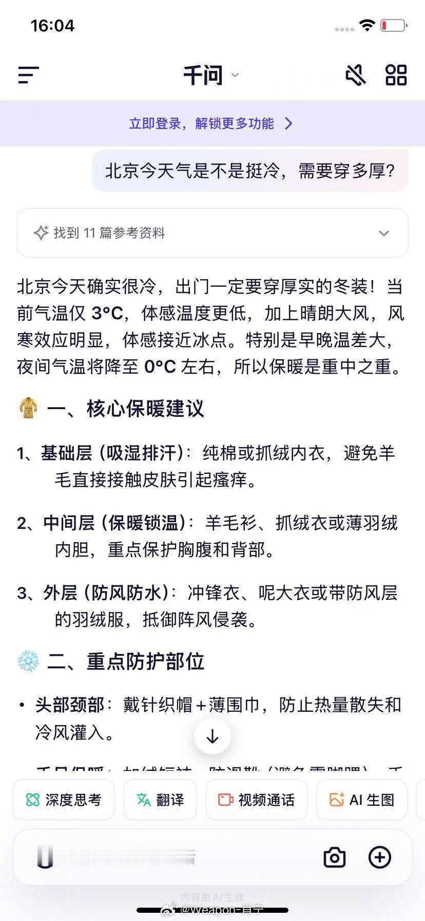 作为一个关注AI发展的博主,我自然是第一时间下载。今上班出门前我问了该穿多少衣