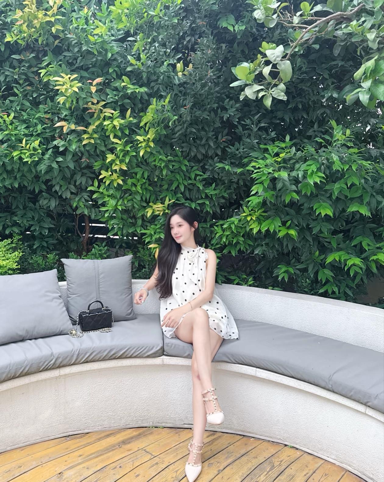 夏日清新穿搭,绿意盎然背景下的优雅时尚