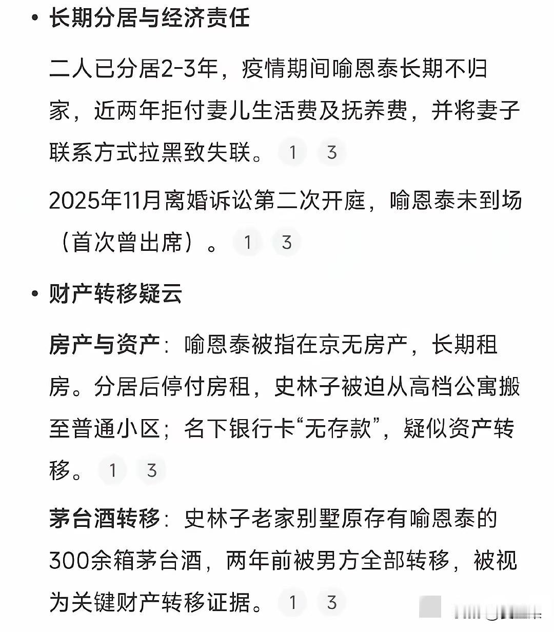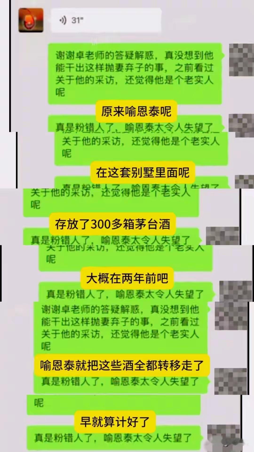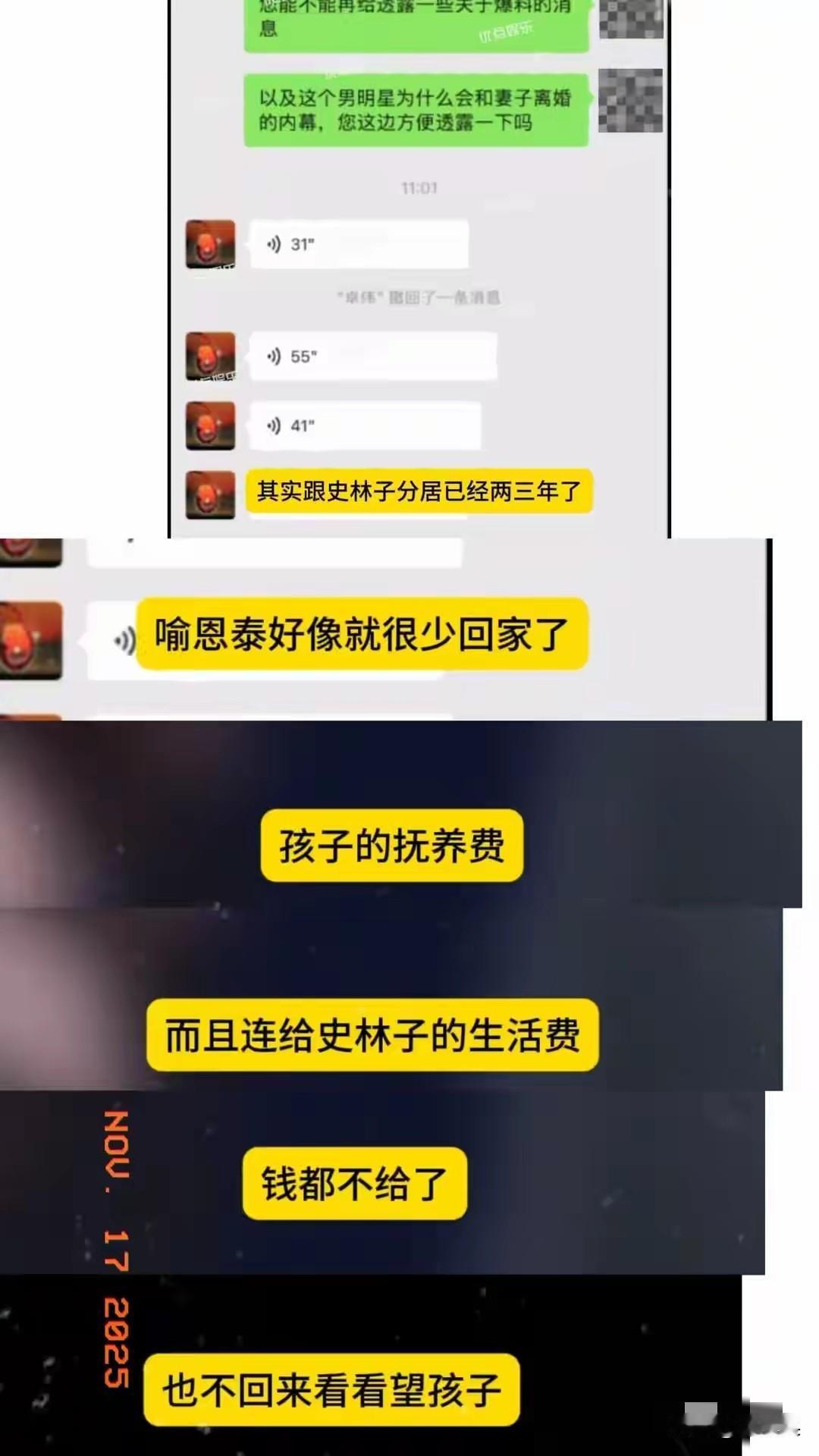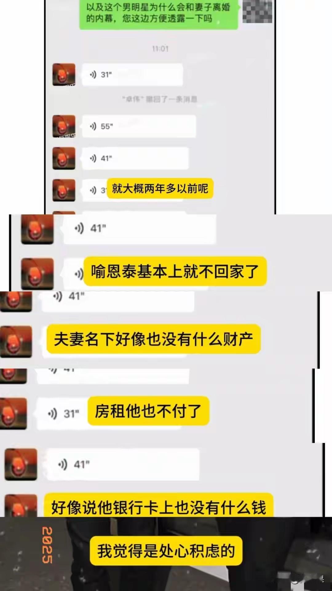 喻恩泰, 要不是他在《沉默的荣耀》扮演蔡孝乾,我都快忘了这个人。 记得他是《武林外传》里的吕秀才, 记得他是博士毕业, 至于什么时候结婚的, 现在又传抛妻弃子,转移财产,就不知道了。 听说这是娱乐圈里的大师卓伟爆料的, 说他的妻子现在第二次起诉他, 他两年时间里 不回家、不见面、不沟通,对一双儿女不管不顾,不给抚养费。 期间却被妻子查到在默默转移财产。 导致目前法院查到, 喻恩泰名下没有房产、没有存款。 难道说这个人在外躲债去了? 老公说我醒醒吧,别太善良了。 果然,他妻子知道他存有300箱茅台酒,在申请财产保全之际,却被喻恩泰偷偷转移走了。 所以,喻恩泰是有财产的,只多不少。 至于为什么这么绝情, 卓伟大师专门问了一句话: 什么原因会让一个男人抛妻弃子,转移财产? 咱也不知道, 保险起见, 手速, 赶紧把《武林外传》和《沉默的荣耀》下载吧, 别影响了这两部好剧。