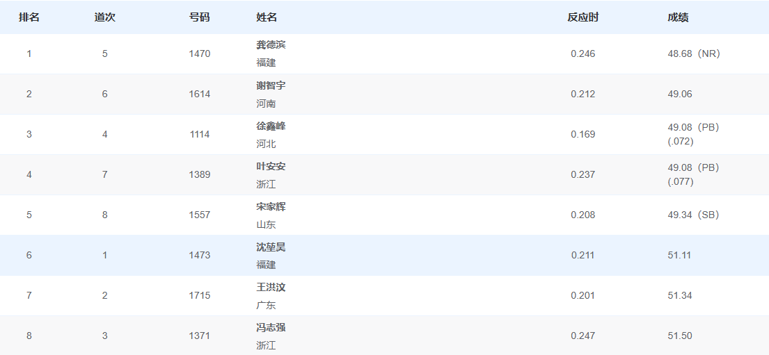 龚德滨(福建)—48.68(NR,全新全国纪录)