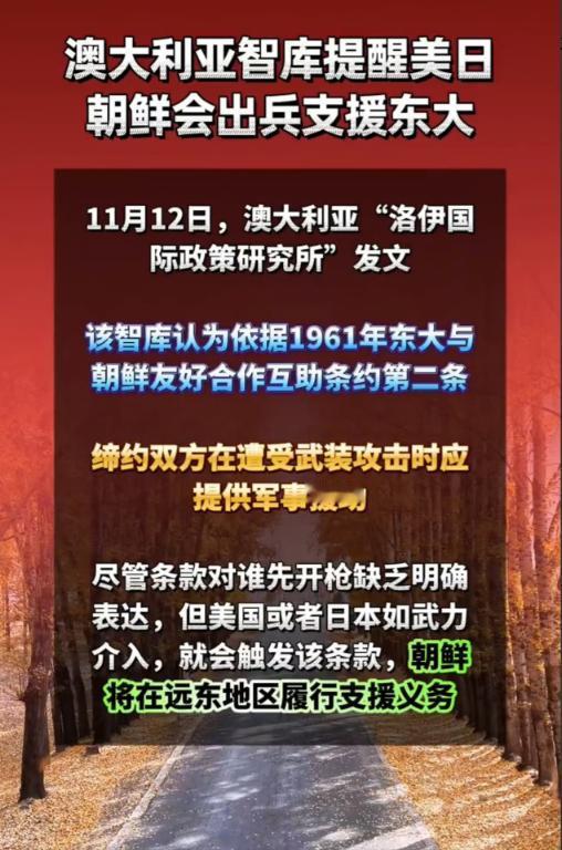 澳大利亚智库提醒:如日本武力介入台海,朝鲜必参战!日本武力介入将会自动触发《中朝友好合作互助条约》中的共同防御条款。如果日本出兵钓鱼岛或台湾,直接攻击中国领土,构成对中国的"武装进攻",中国因此进入战争状态,理论上会触发条约。 朝鲜官方曾明确表态:一旦中国军队与日本交战,朝鲜将站在中国一边,对日"狠狠地予以痛击",朝鲜将会像出兵援俄一样出兵对日作战,支援东方大国。 这事儿绝非空穴来风,看日本近期动向,其“武力介入”的潜在可能早有铺垫:2025财年防卫预算首次突破8万亿日元,计划部署400枚“战斧”巡航导弹,还从美国采购大量先进弹药。 军事行动上,日本不仅频繁参与美日韩“自由之刃”“坚毅之龙”等联合军演,1月更出动F-2战斗机在半岛公海开展空中演习,实战化指向性极强。 此外,日本还与北约勾连开设东京联络处,加速构建远程打击能力,朝鲜直斥其为“战争脚本”。 而1961年《中朝友好合作互助条约》绝非装饰品:第二条明确缔约一方遭武装进攻时,另一方需全力提供军事援助;第七条规定未经双方同意,条约永久有效。若日本武力介入半岛事务,该条约的约束力将即刻凸显。 这事儿根本不是空穴来风,第一,得把中朝之间那份签了64年的条约拎出来说清楚,1961年周恩来总理和金日成首相签的《中朝友好合作互助条约》可不是摆着看的装饰品,里面第二条写得明明白白,只要缔约一方遭到武装进攻陷入战争状态。 另一方就得立刻尽全力给军事援助,而且第七条还说了,没经过双方同意改条约或者终止条约,这玩意儿就永远有效。 2021年外交部发言人赵立坚都特意确认过,这条约现在照样算数,每年两国还会办纪念活动,2024年中国驻朝大使馆还刚办过签署63周年的招待会,这种持续了半个多世纪的承诺,比任何口头表态都管用。 朝鲜这人,从来都是说到做到,不是那种光喊口号的主儿。2024年俄乌那边的事儿就是最好的例 子,一开始韩国情报机构说朝鲜要派12000人的特战部队去帮俄罗斯,不少人还觉得是造谣,结果后来乌克兰国防部长都证实跟朝鲜士兵交上火了,俄罗斯外交部也承认朝鲜士兵在库尔斯克作战立了大功,连普京都发了感谢函。 朝鲜中央电视台后来还放了纪录片,金正恩早在2024年8月就下令出兵了,派去的还是绰号“暴风军团”的第11集团军精锐,这支部队可是朝鲜20万特战部队里的尖子,专门负责深入敌后作战。 从2023年开始朝鲜就给俄罗斯运了1.3万多个集装箱的弹药,到后来直接派兵参战,这种说干就干的劲头,足以说明只要条约触发,朝鲜绝对不会含糊。 而日本这边现在总跟着美国在台海周边晃悠,又是在西南诸岛增兵,又是跟美国搞联合军演,真以为自己能当马前卒捞点好处。 但他们怕是没算明白,一旦真的出兵台海或者钓鱼岛,那就不是简单的“介入”了,而是直接对中国领土发动武装进攻,这正好撞在《中朝友好合作互助条约》的枪口上。 况且台湾问题可不是小事,澳大利亚洛伊研究所2025年1月的报告都统计了,联合国193个会员国里,有89个国家都明确认可中国对台湾的主权,还支持中国为统一采取“一切努力”,连美国都承认台湾是中国的一部分,日本非要往这个雷区闯,纯属自找不痛快。 关键是朝鲜对日本从来就没客气过,之前就多次表态一旦中国和日本开战,肯定站在中国这边“狠狠地予以痛击”。 以朝鲜现在的军力,也确实有这个底气,他们的导弹射程早就能覆盖日本全境,之前援助俄罗斯的KN-23导弹在前线表现还不错,更别说还有20万训练有素的特战部队。 要是日本真敢动手,朝鲜根本不用跨海大规模派兵,光导弹就能让日本本土不得安宁,再配合中国的军事力量,两面夹击之下,日本那点自卫队根本不够看。 这就好比两个人打架,一方还没动手呢,对方的帮手已经抄起家伙站在身后了,日本要是真没掂量清楚这层关系,非要当美国的棋子,那最后被收拾的时候可别喊冤。 说到底,这事儿的核心就是那份64年的条约和朝鲜的行事风格,条约把“一方挨打、另一方支援”的规矩白纸黑字写死了,朝鲜又用援俄的实际行动证明了自己不会违约,日本要是非要往枪口上撞,那就是把自己架在火上烤。 东亚这片地方,从来不是外人能随便撒野的地方,台海更是中国的内政,日本想当马前卒之前,最好先翻翻中朝那份条约。 还有2024年朝鲜在库尔斯克的表现,想清楚自己能不能扛得住中朝联手的反击,毕竟作死这种事,一旦做了可就没回头路了。