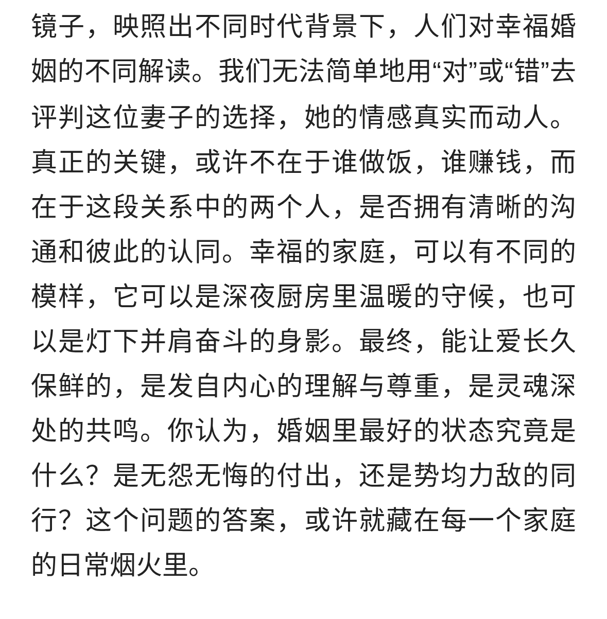 但从整体来看,主要可以包括以下几个方面: 情感的伴侣关系:婚姻提供...