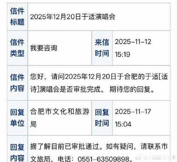 于适的个人演唱会审核通过了