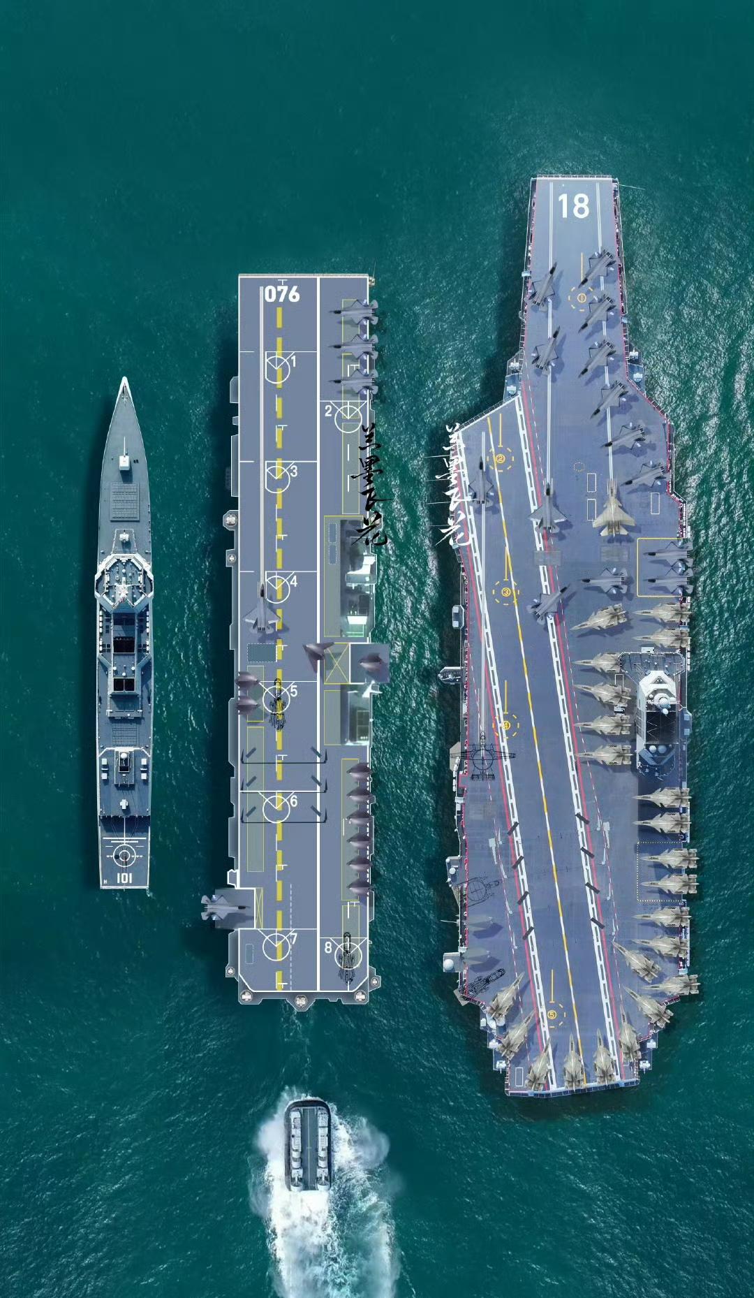 宣传口径:航母,两栖攻击舰,驱逐舰。实际上:超级航母,常务副航母,巡洋舰。