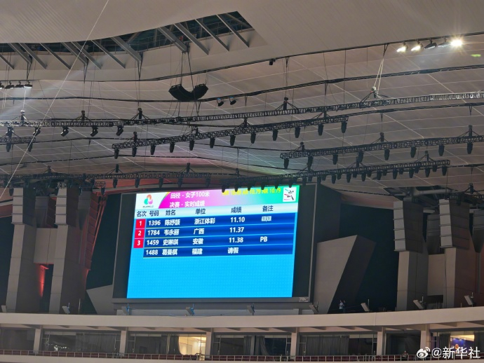 17日晚,第十五届全国运动会田径项目女子100米决赛中, 以11秒10的成绩夺冠。