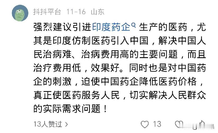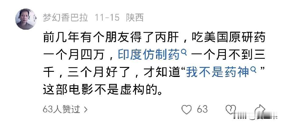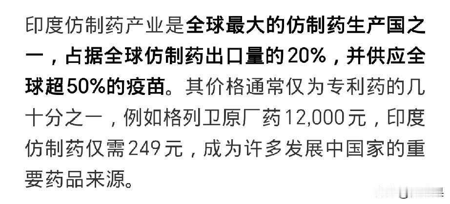 《我不是药神》照进现实, 印度的仿制药大量进入中国市场了。 有人欢喜有人忧, 喜的是, 有些救命药能消费得起了,不为买不起进口药发愁了。 忧的是,仿制药毕竟不是真药, 顾名思义,就是印度仿制其他的药制作而成, 药效一样吗? 质量保证吗? 万一害人怎么办? 但是记住,仿制药虽然不是真药,却也不是假药。 印度目前是全球最大的仿制药制作国家之一,是世界卫生组织允许的。 为什么会诞生出来仿制药? 专家说,印度这一招还是跟中国学的呢。 中国六七十年代,缺医少药,国外的药也消费不起,为了保障国民健康,国家就研制出青霉素钠,青霉素V钾,来代替青霉素。 当时,印度来中国学习,就把这一招学走了。 结果现在遍地开花,仿制药走在了世界前列,反倒我们,对这一块儿不再重视。 现在,印度仿制药大量进入中国市场,对老百姓是有好处的,因为消费得起了。 可是对一些药商药厂来说,会有一定冲击,要想生存,除非自己愿意把价格降下来。