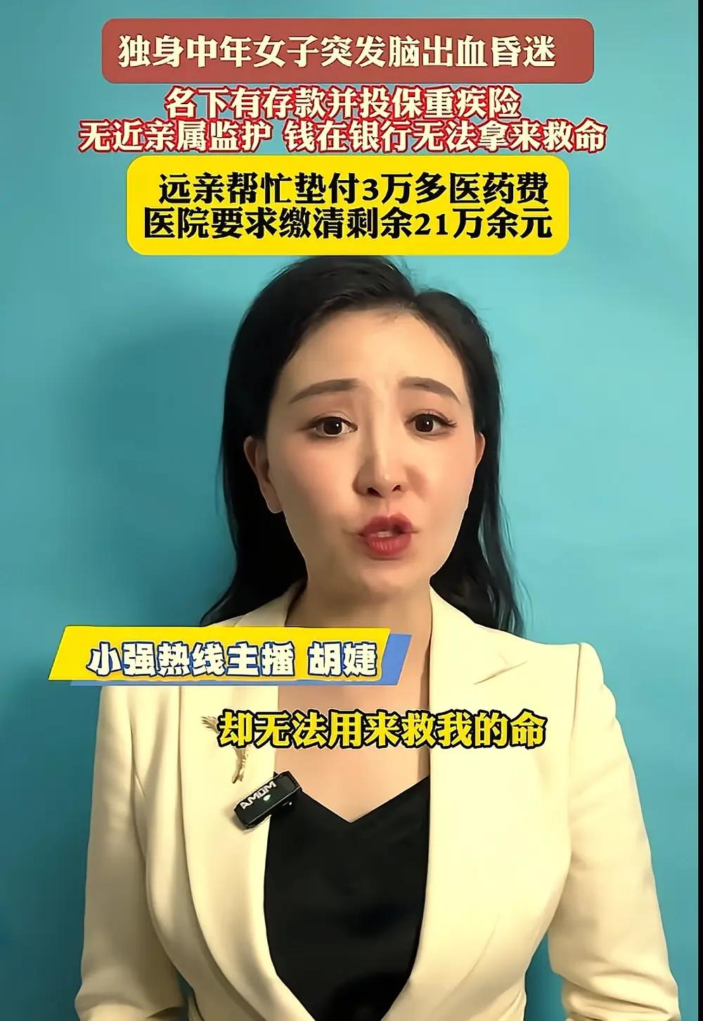 银行里明明有存款,却不能取出来救自己的命!”上海46岁独身女子突发脑出血昏迷,送医后需紧急手术,但女子未婚无子女,父母双亡,没有近亲属监护,陷入昏迷的她无法动用自己的存款救命!银行拒绝支付医疗费,保险公司拒赔! 这不是一个简单的医疗事故,也不是一场普通的家庭悲剧。这是一场关于制度、关于人性、关于我们每个人未来可能面对的困境的深刻反思。 故事的主人公,是一位46岁的上海女子,她独自一人,没有配偶,没有子女,也没有兄弟姐妹。父母早逝,生活的重担全都由自己一人扛着。平日里,她勤奋工作,存下一笔积蓄,心想着未来的日子还能安稳过一阵子。然而,命运的无常让她在一个平凡的日子里突发脑出血,生命垂危。 送到医院的那一刻,医生立刻开始抢救,但随之而来的问题却让人心碎:她没有亲人,无法指定代理人,也没有任何合法的监护人。更令人震惊的是,她的存款——那是她多年来辛苦积累的血汗钱,却成了她救命的“天价门槛”。 银行拒绝支付医疗费!理由是“没有授权人”或“没有合法代理人”。她的存款,仿佛变成了一块无法触碰的“死钱”。在她昏迷的那段时间,银行的系统冻结了她的账户,医生们苦苦等待,却无法动用那笔本应救她一命的资金。 更令人愤怒的是,保险公司也拒绝赔付。合同上写明“被保险人在紧急情况下的医疗救助”,但由于没有“法定代理人”签字,保险公司坚称“无法理赔”。这场本应是“生命的救援”,变成了一场“制度的障碍”。 这个故事,折射出一个令人深思的社会现实:我们的制度,是否真正考虑到了每一个普通人的突发危机?在这个快速变化的社会里,许多人像她一样,孤身一人,面对突如其来的生死关头,竟然会陷入“制度的死角”。 我们不禁要问:为什么一个人辛苦存下的血汗钱,不能在关键时刻变成救命的“救命钱”?为什么没有一套灵活、便捷的应急机制,让那些孤身一人的人们在危难时刻能得到及时帮助?更何况,银行和保险公司作为“守门人”,难道只是在冷冰冰的制度中机械操作,而忽视了最基本的人性关怀? 这件事情,也让我们反思:我们是否在日常生活中,忽略了“监护人”的重要性?是否应该为每个人都设立一份“紧急授权”或“生命应急包”,让关键时刻可以“授权他人”代为行动?毕竟,谁都可能成为那位“突发危机”的主角。 更深层次的思考是:我们每个人,是否都在无形中被制度束缚?我们的存款、保险、甚至生命的救助,都被繁琐的规则绑架。这样的制度设计,是否在无意中“剥夺”了我们最基本的生命权利? 这件事情,也许只是冰山一角,但它的背后,是我们每个人都必须面对的现实:在这个制度体系下,我们是否真正拥有“自主权”?在危难时刻,我们是否还能用自己辛苦积累的“血汗钱”救自己一命? 或许,我们需要的不仅仅是制度的改进,更是对人性关怀的重新审视。每个人都值得被尊重、被保护,尤其是在生命的关键时刻。 所以,朋友们,这个故事不仅仅是一个悲剧,它更像是一面镜子,照出了我们社会的缺陷,也提醒我们:每个人都应该成为自己生命的第一责任人。我们要问自己,未来的日子里,我们是否做好了“应急准备”?我们是否为自己和身边的人,建立了一份“生命的保障”? 让我们共同关注,呼吁制度的变革,让“生命无忧”成为每个人的权利,而不是一场奢望。毕竟,生命只有一次,我们不能让制度成为阻碍生命的“墙”。未来,愿每一个像她一样的普通人,都能在危难时刻,拥有一份真正的保障和希望。 ——这是我们每个人都应该思考的问题,也是我们共同努力的方向。因为,生命的价值,远远超越了任何一份存款或保险。脑出血 女孩脑出血