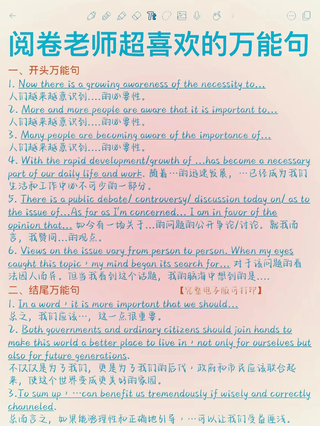一篇吃透‼️英语写作高分万能句!背会就稳了