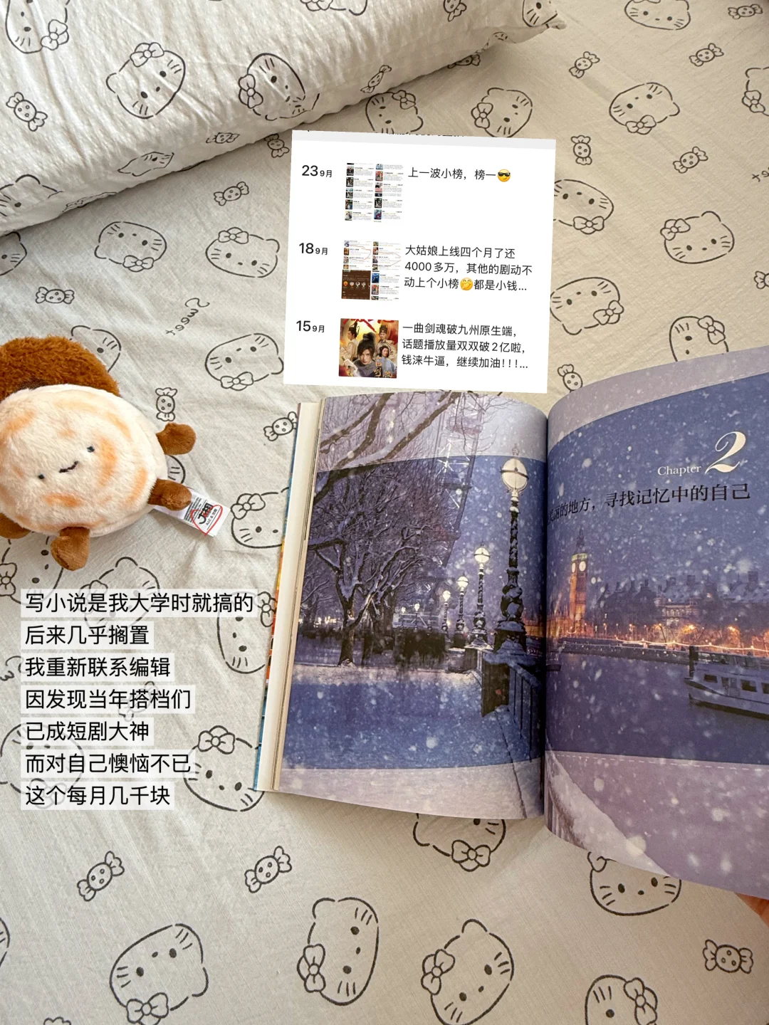 这是我大学时就搞的后来几乎搁置。我重新联系编辑、蹲群观察行情,因发现当年搭档们已成短剧大神而对自己懊恼不已。每月几千块。