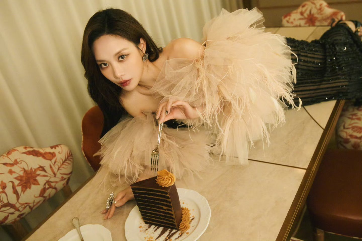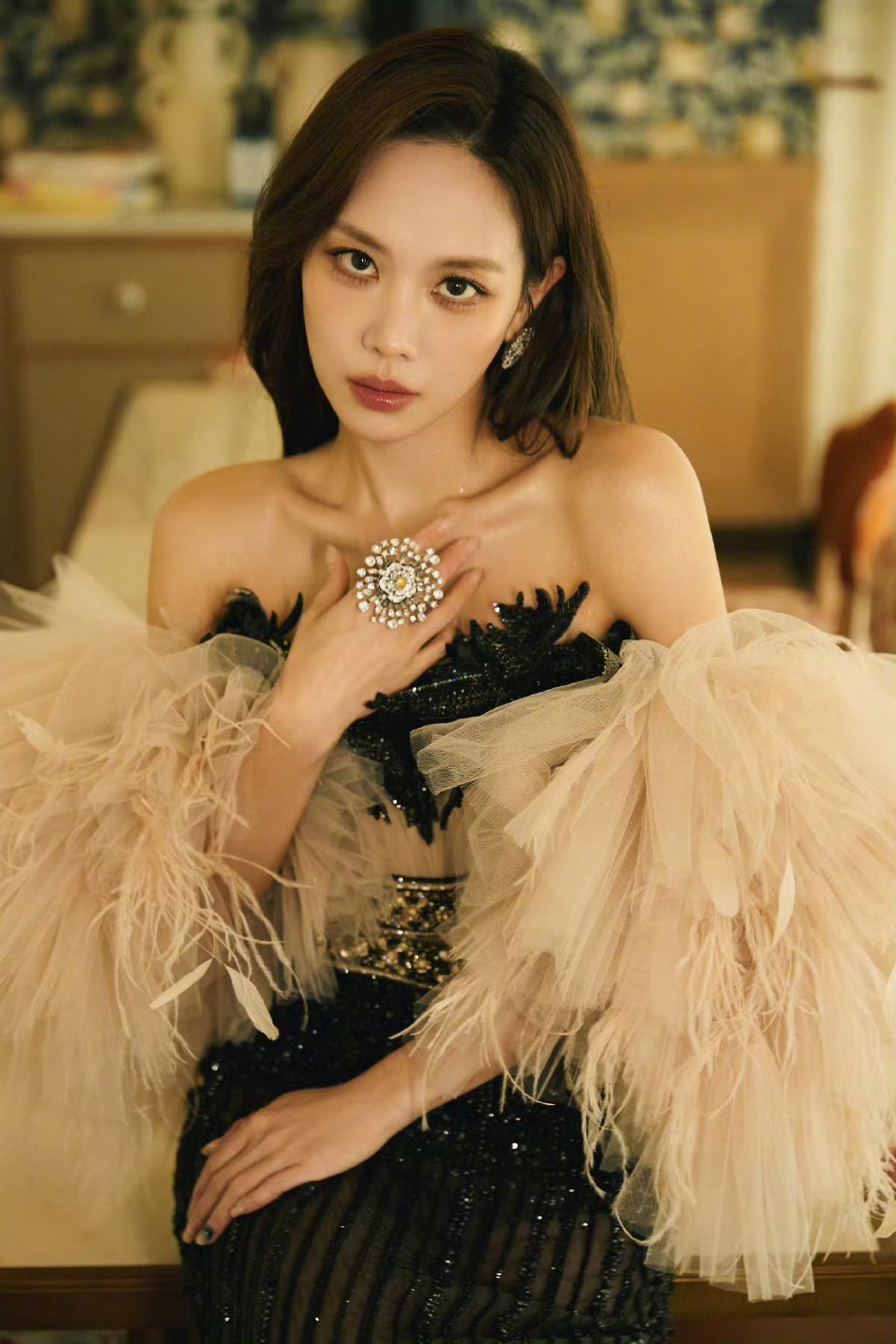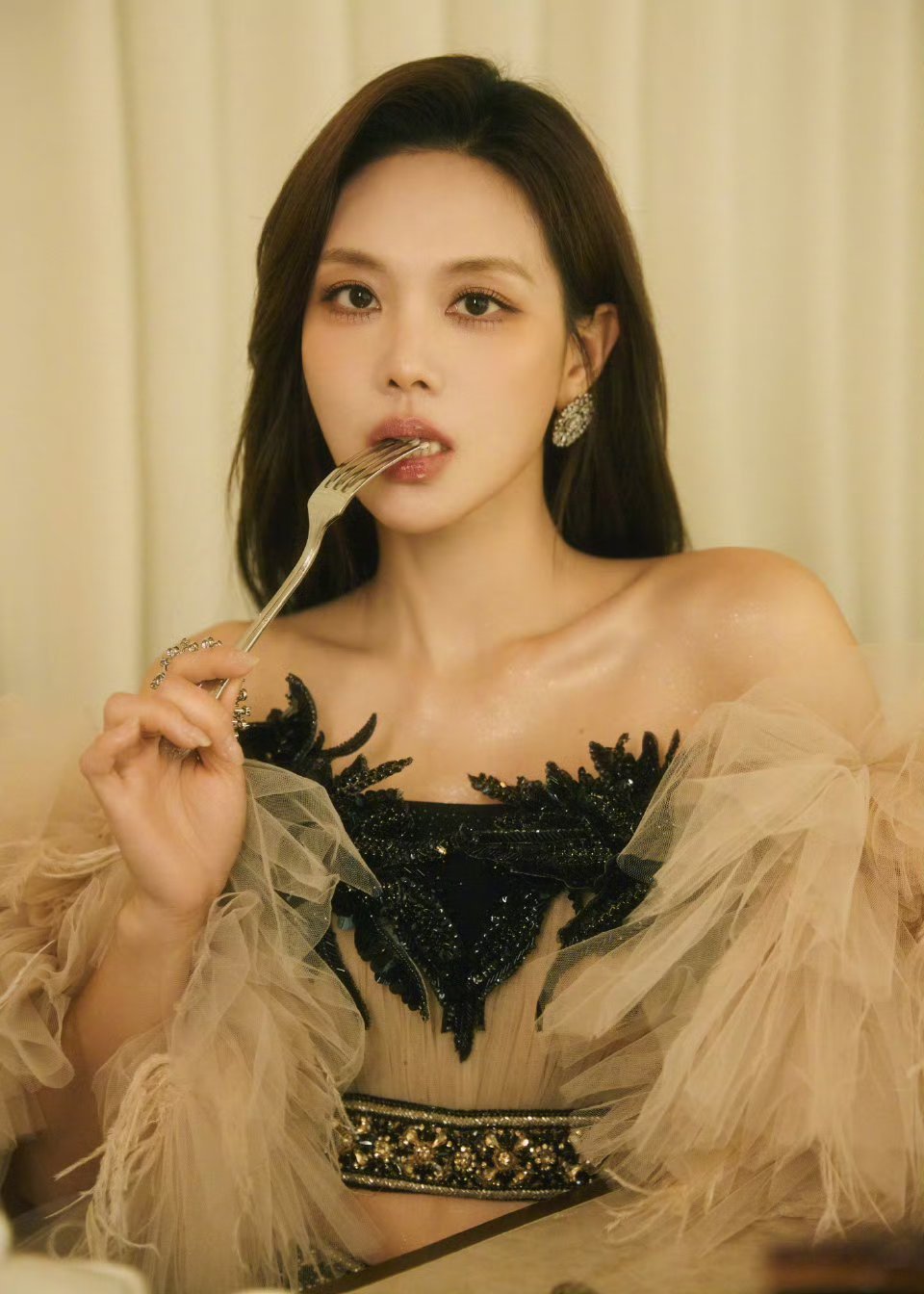 刘亦菲把死亡玫粉穿出了定制款的感觉,这种颜色普通人穿上分分钟黑三度,她居然能穿出