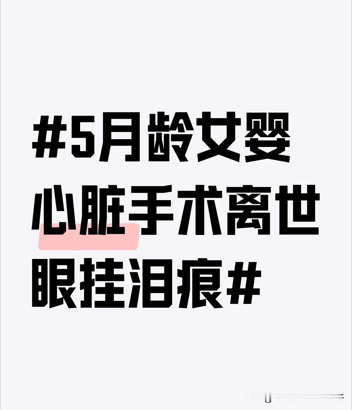 5月龄女婴心脏手术离世眼挂泪痕 太揪心了,宁波那个5个月大的早产女婴做心脏手术没挺过来,走的时候眼角还挂着泪。本来医生说小手术,2.5到3小时就能结束,结果做了7小时,全麻近9小时,还大出血。家属说术前没被告知病可能自己长好,术中情况也没及时说,术后还称“手术成功”,这太离谱了。 孩子就这么没了,家属得多崩溃。现在涉事医生停诊,卫健委介入调查。这起事件暴露出医患沟通的大问题,希望能彻查,给家属一个交代,也给大家一个真相。