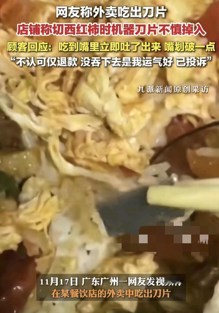 杭州一男子下班之后点了一份外卖,因为吃的比较急,竟然吃出了一块刀片,幸亏是没有吞下去,商家表示可以退款处理,但是男子对于仅退款的处理并不认可,因为没吞下去,是他自己运气好,如果吞下去了,不敢想象后果会怎么样,张家村应该是搅拌机上面的刀片滑落了没有注意引起的,后续客人可以跟商家协商处理赔偿事宜。除了赔偿做餐饮的,在这方面还需要提高警惕。