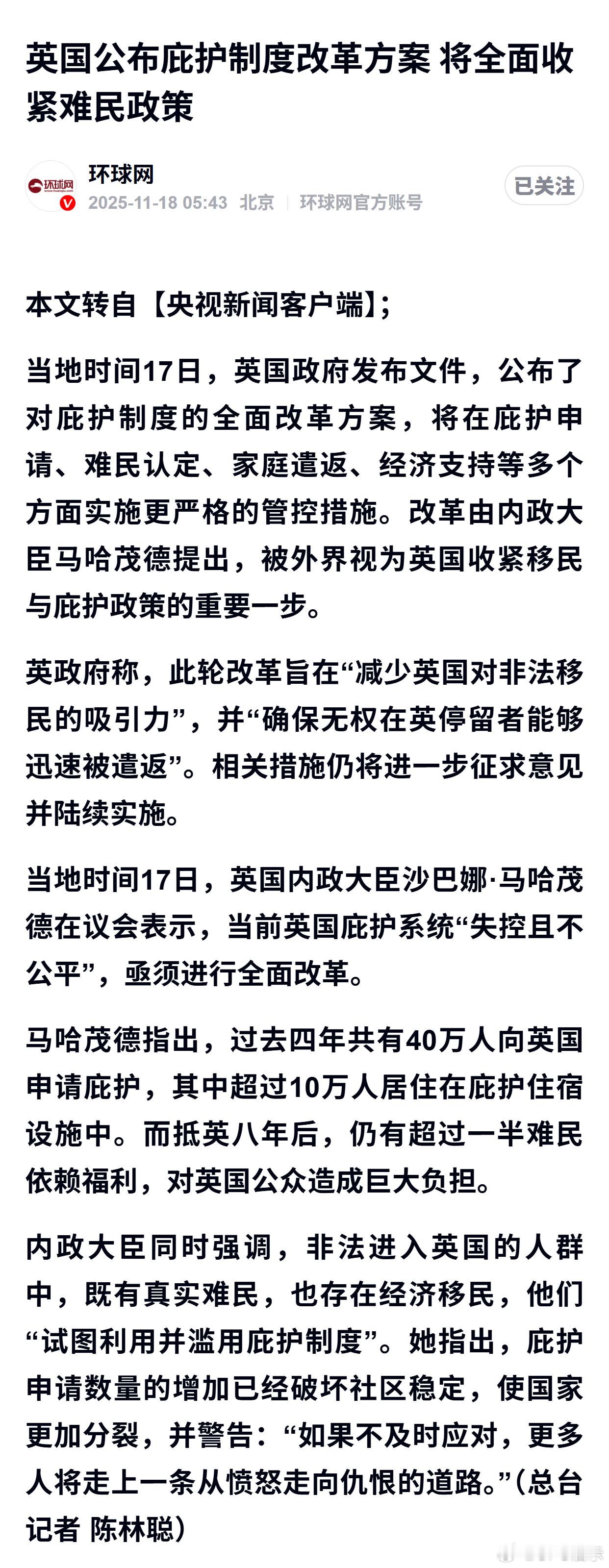 英国公布庇护制度改革方案 将全面收紧难民政策