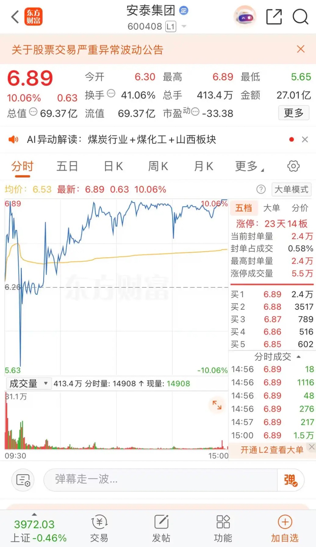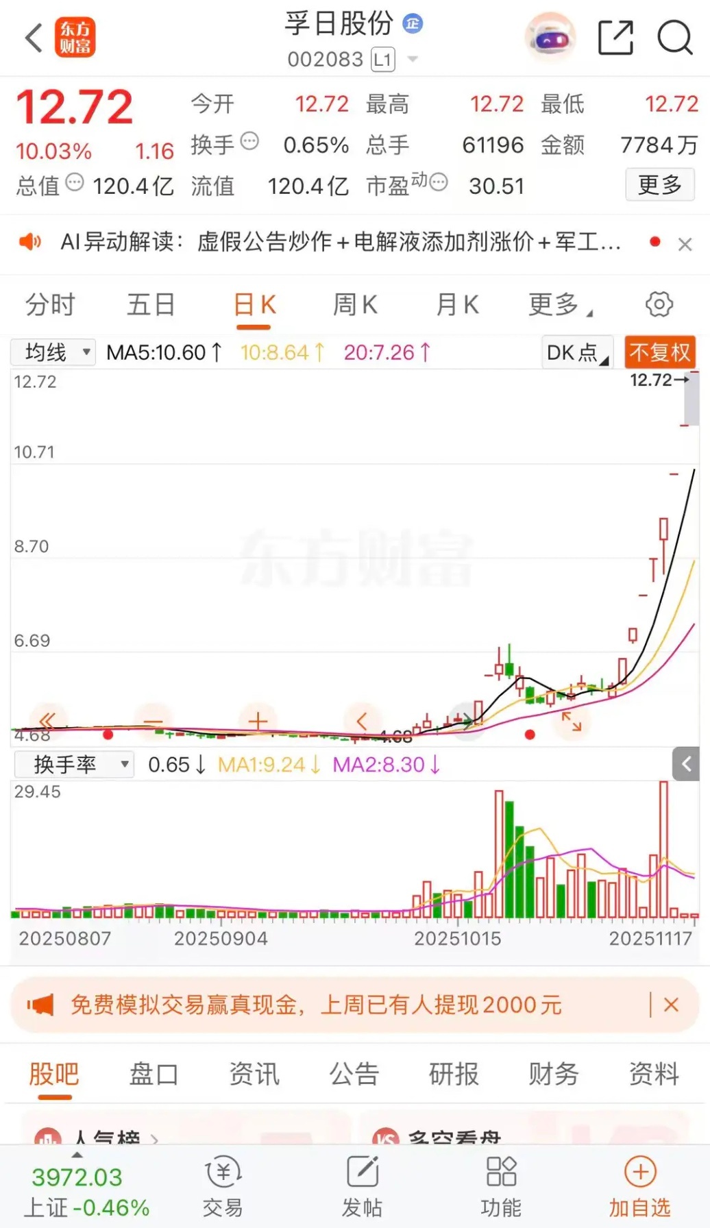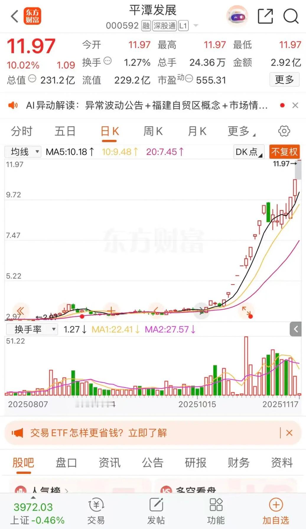 合富中国停牌核查接下来会是谁,平潭发展,安泰集团,孚日股份平潭发展涨停板收盘报收11.97元每股,成交金额2.92亿元,一字板涨停,福建股依然是市场最靓的仔。孚日股份涨停板收盘报收12.72元每股,成交金额7784万元,强强强,还能涨,毕竟是央国企低价。安泰集团涨停板收盘报收6.89元每股,成交金额27.01亿元,今天巨震,明日关键时刻。孚日股份最不可能停牌核查。把握节奏,过几天估计沪指又要上4000点