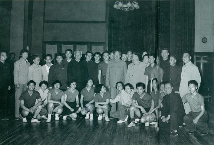 毛主席与运动健儿们合影