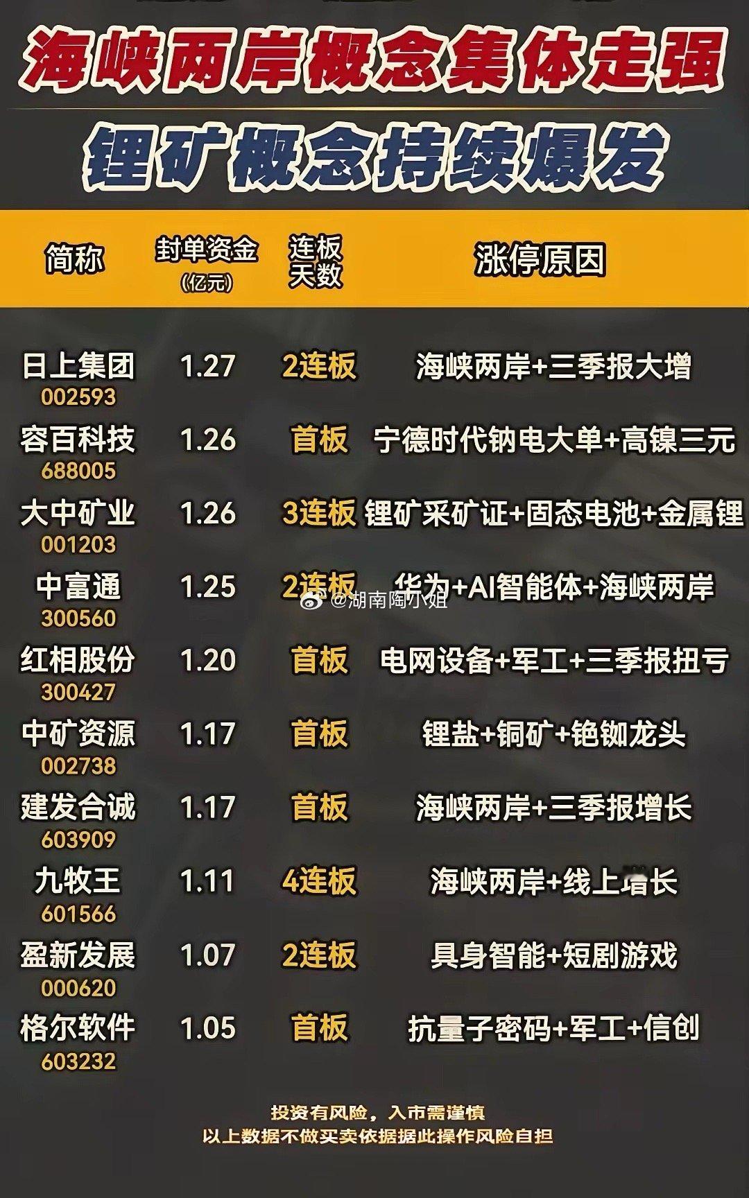 海峡两岸概念集体走强!锂矿概念 持续爆发