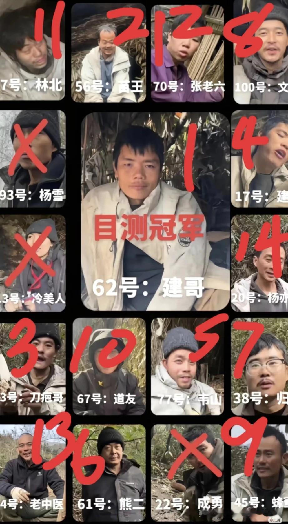 独家预测!老六荒野七星杯 老六七星杯的“荒野厮杀”已经杀疯了!最新战力榜我扒来了—— 62号建哥直接焊死“冠军位”!这庇护所+资源储备,说是荒野BOSS没人反驳吧? 56号黄王、70号张老六稳坐前3,林北喊着“要排11”?别装了!这哥八强稳进决赛的实力早藏不住了! 最疯的是67号道友!我私心把他按在第10——无火生存这操作,到底是“作死”还是创造历史? 熊二直接逆袭!开局像青铜,现在资源拉满能冲决赛!反观摩北、抗海碗在淘汰线蹦跶,张老六状态狂掉看得我捏把汗… 争议来了: 道友这“零火流”到底能活几轮?建哥真能一路躺赢到最后?评论区赌博输赢!