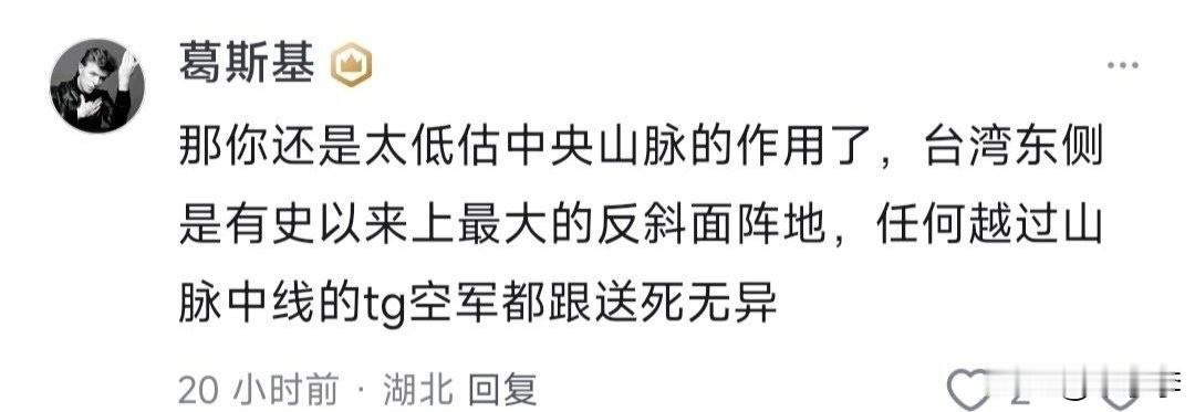 以前没航母,扯中央山脉是最大的反斜面阵地还有那么一点点道理,毕竟大陆的飞机和导弹都得从西北边飞过来。现在都三艘航母了,扯中央山脉是不是傻…三艘航母从太平洋方向干你你那反斜面阵地不是炸了…[黑线] 这些蛙的首要目标是不是,让岛上的绿蛙头子和草莓兵相信“护国神山”真的能保护他们,而不是让解放军相信。台蛙
