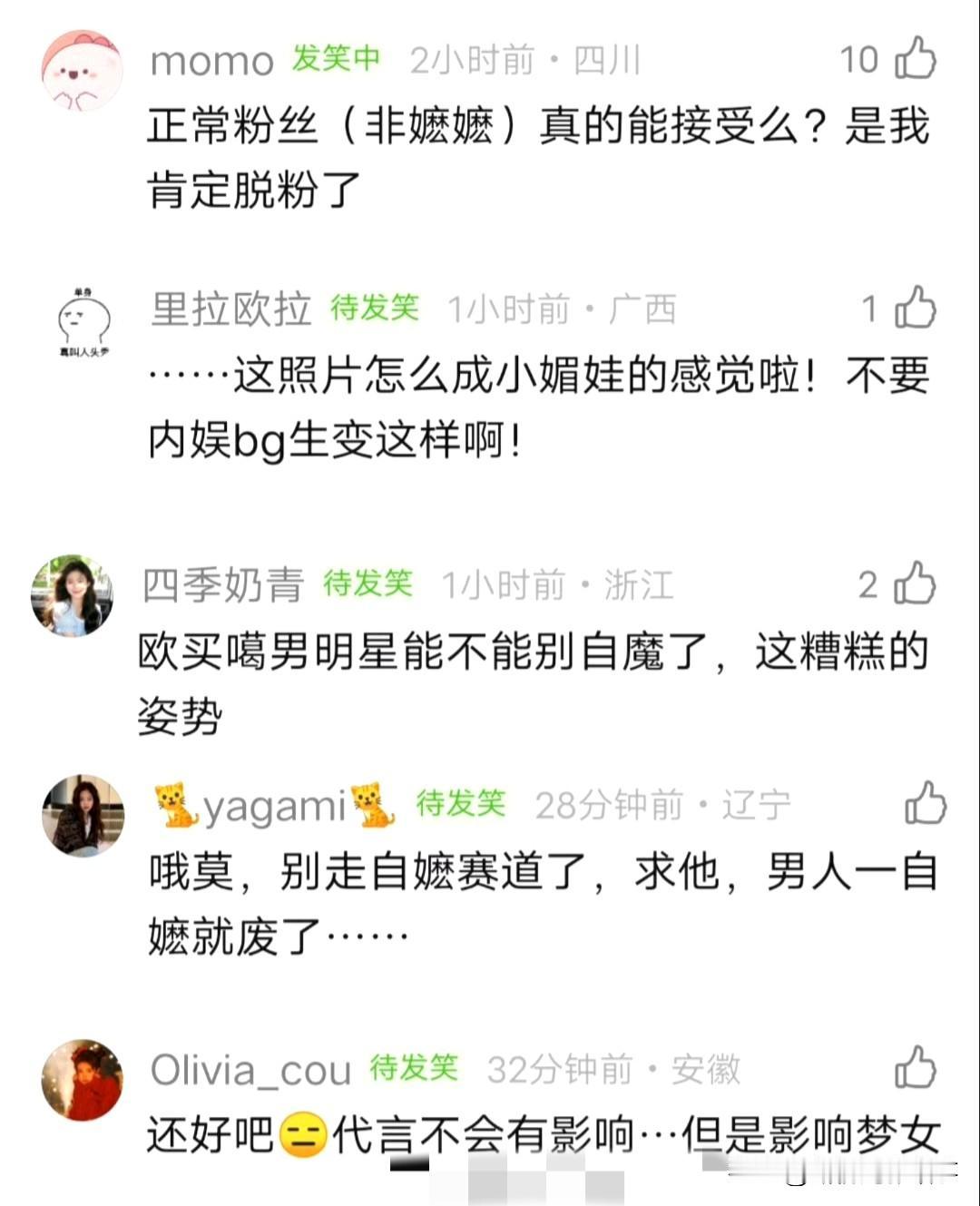 《侯明昊工作室营业引争议:男星当避“自嬷”赛道》 侯明昊工作室的营业风格近期引发网友热议,不少人直言“男明星该远离自嬷赛道”。 过度强调“可爱”“软萌”的营销,虽能吸引部分粉丝,却也容易消解男星的多元魅力。 观众更期待看到的是~作品里的实力展现和营业中的清爽态度——与其陷在单一风格里,不如用角色和质感站稳脚跟,才是长久之道。