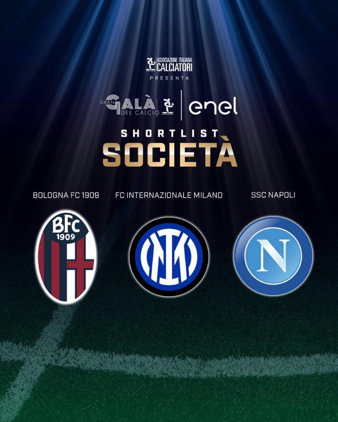 官方:国际米兰入围了意大利足球年度颁奖典礼最佳俱乐部奖的候选名单 另外还有那不勒斯和博洛尼亚