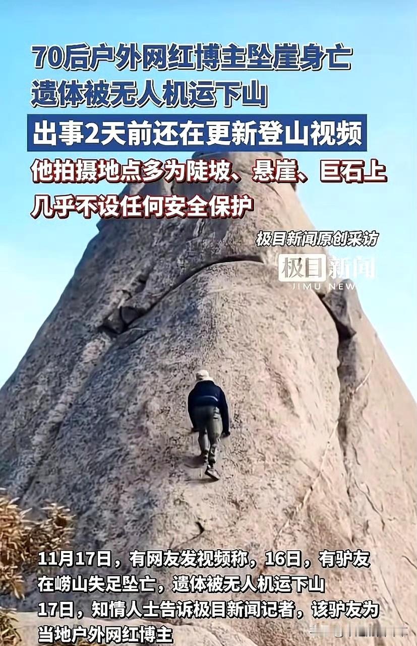 涛哥离世 面临巨大压力和痛苦的 不是围观的网友,而是 跟随他爬山的驴友 他每周带大家爬山徒步,群里2000多人跟着他走野路、爬悬崖,都觉得有他在就安全。现在他自己坠崖没了,那些跟他爬过巨石、走过陡坡的人,估计心里都揪着,后悔没多劝两句,或者后怕自己会不会也遇到这种事。 14号他还发视频徒手爬巨石,下边就是悬崖,看着都吓人。15号还说要挑战崂山,谁知道转天就出事了。群里人可能昨天还在群里聊天,今天就收到退群通知,这种突然的离开,换谁都得缓不过来。 总觉得大自然能宽恕挑战,可大自然什么时候真正被人类拿捏过?