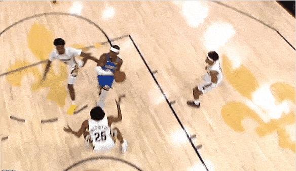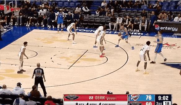 玩起来了!雷霆双星戏耍鹈鹕全队! 在今天NAB常规赛雷霆对阵鹈鹕的第三节比赛中,亚历山大挡拆下顺接球吸引三人包夹后一个回传助攻中路内切的切特完成单手劈扣缺兵少将的鹈鹕今天真是被雷霆打得没脾气!这比赛真是没法打!