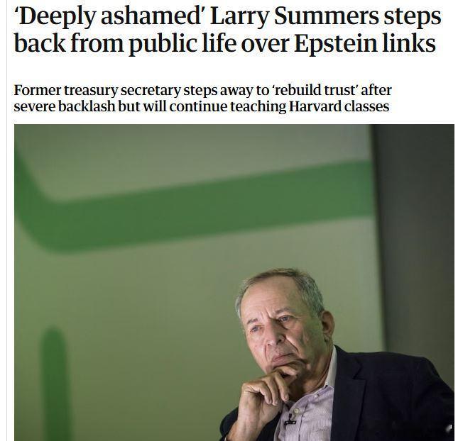 哈佛大学前校长,美国前财长劳伦斯·萨默斯(Lawrence Summers)因与杰弗里·爱泼斯坦的儿童贩运网络存在关联而宣布卸任公共职务,但继续在哈佛执教。公开文件显示,从 2013 年到 2019 年,萨默斯多次与爱泼斯坦通信,内容涉及政治、哈佛大学事务、甚至个人情感。有邮件显示,萨默斯曾向爱泼斯坦征询关于一位被他称为 “门徒” 的女性的建议,爱泼斯坦在其中自称是他的 “wing man(助力)”萨默斯在声明中承认这是 “严重的判断错误”,并表示深感羞愧。