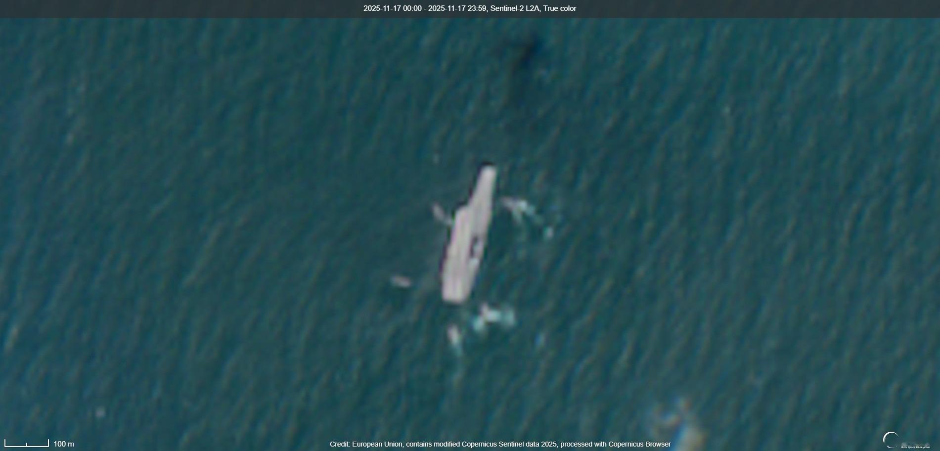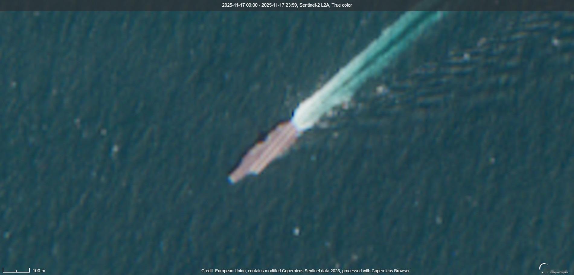 卫星图像显示,在福建舰入列之后,福建舰和山东舰都离港进行训练
