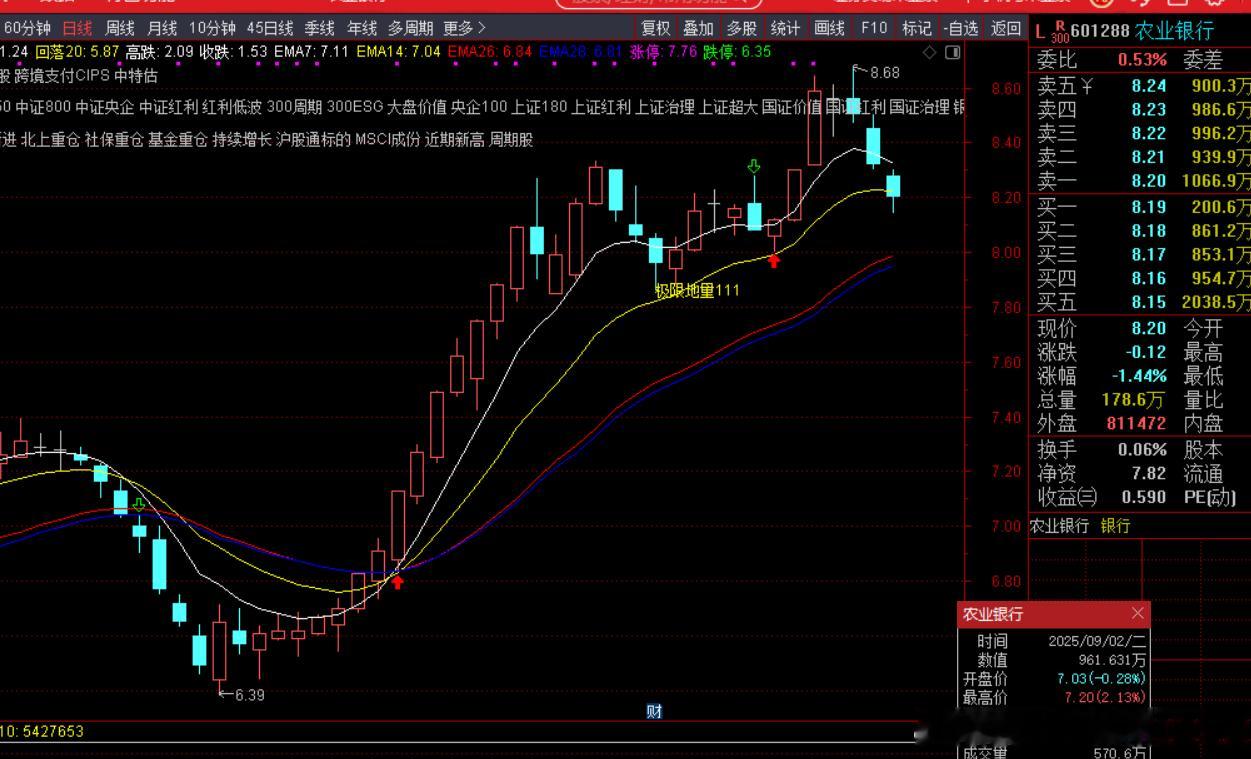 农业银行,本质上是个护盘题材概念股,而不是大家认知意义上的所谓低估值红利股。首先银行的基本面我就不太认,房价跌这样,放在任何一个国家,银行股都要跌。甚至美国股市楼市这么猛涨,美国银行都出了好几轮危机了。我们的银行倒是做好了风险隔离,但股价不跌反涨,还是太突破了。9月做农行,当时就是本着护盘题材概念股去做的,结果当时出手早了点,迎来一轮回撤。幸好随后走出一波30%的涨幅,最后新高走人。如果是正常的红利股价值股,怎么可能一个多月涨30%?你们看其他哪个银行股涨这么快?哪怕小盘银行股也没这么涨吧?小银行多的就涨十几点,有的还跌呢。所以农行这个涨幅,摆明就是当作护盘题材来炒作的,投机炒作资金退去,这几天也不炒护盘了,跟着跌了。等以后需要炒作护盘的时候,再来吧,时间也许是12月底1月初。