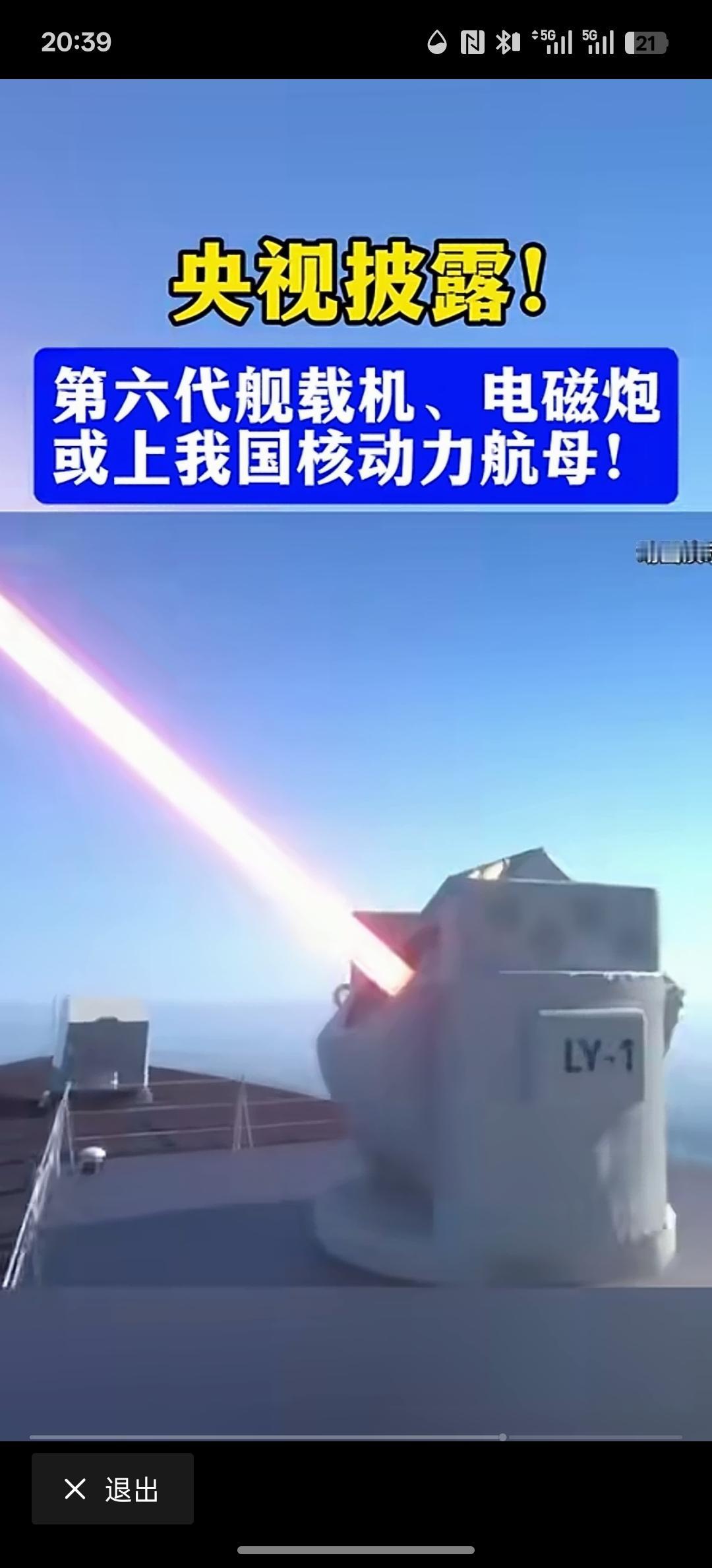 根据央视披露的视频,我国的六代舰载机航母将是核动力航母,而且配置激光武器是电磁炮,用激光电磁炮射击速度更快,更加精准度非常灵活!核动力航母将是六代战机,那实力可想而知!一旦实现核动力航母在能源方面将不是问题,那么这种电磁炮需要大量的电力和动力,是完全可以供应的!想法是可以实现!