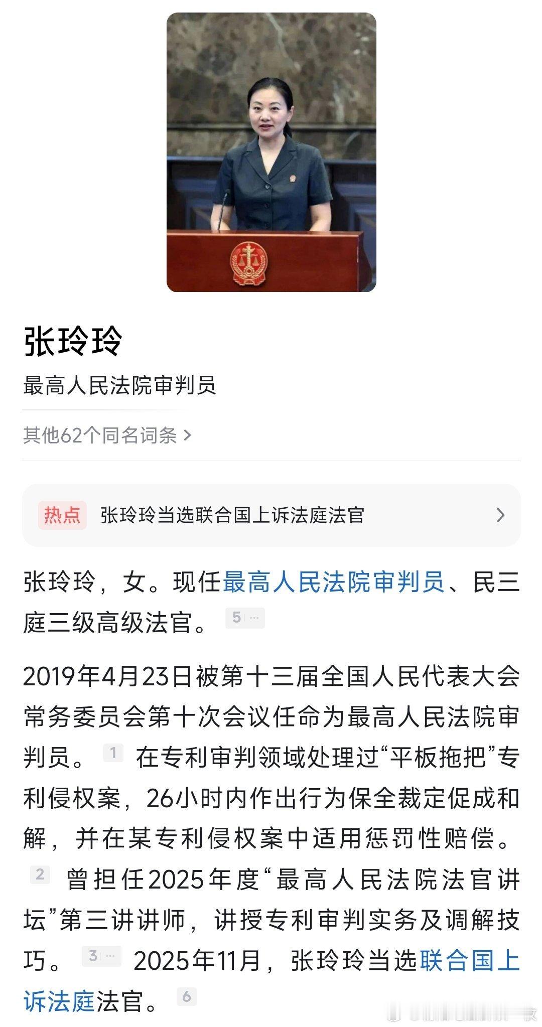 张玲玲当选联合国上诉法庭法官,今年44岁的张玲玲法官是此次上诉法庭法官选举中唯一来自亚太地区的候选人。