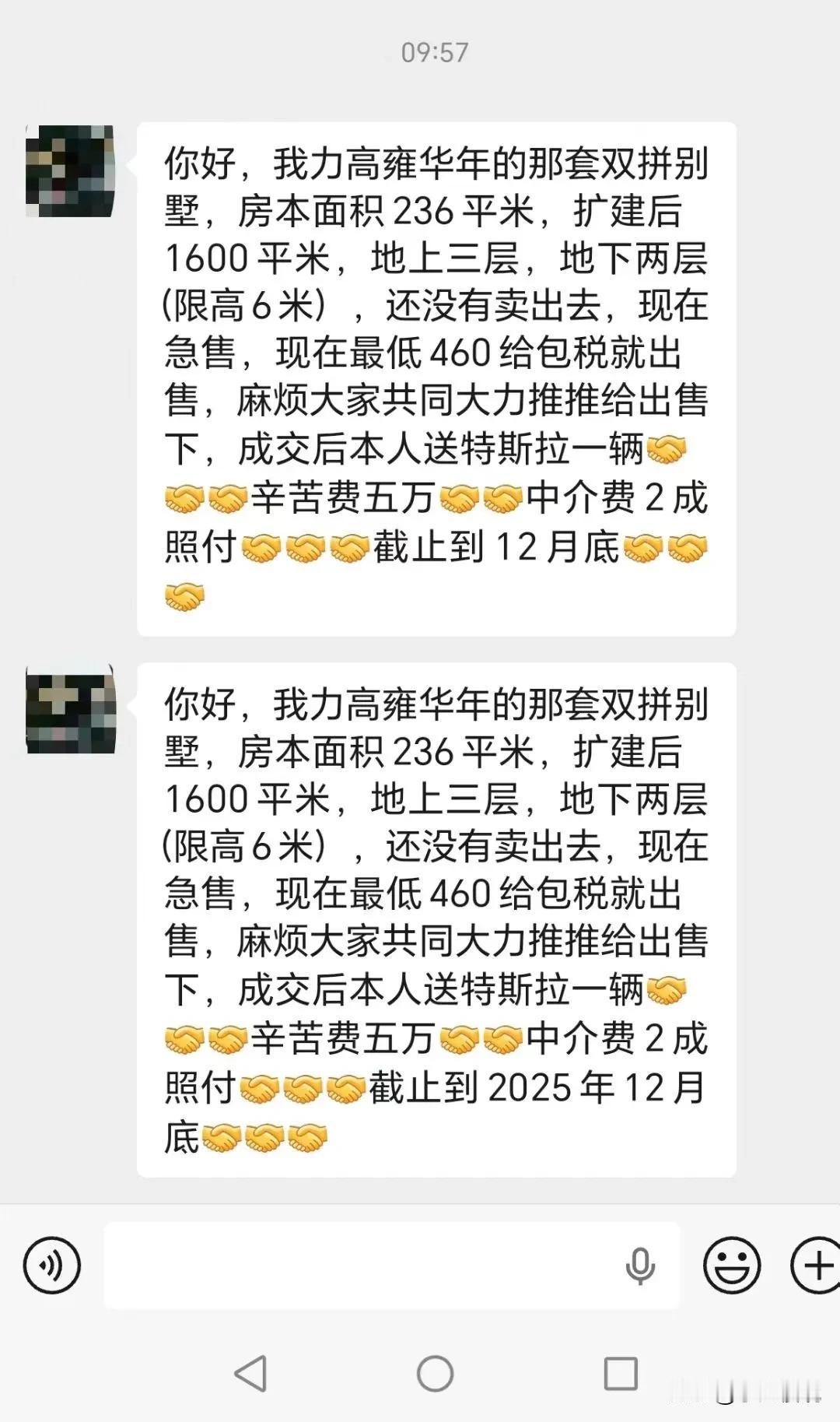 今天是不是被这套房子刷屏了? 1.房价打折 2.成交后送一套特斯拉(博主默认毛豆3) 3.辛苦费5万 4.中介费2% 所以中介疯狂刷屏,博主计算了一下,这个房子是商墅,除了房价打折亏400万,税费近百万,卖房成本33万(毛豆3算20万),硬亏损533万,这个计算的是全款买入的,希望业主没有贷款,如果有贷款,亏损肯定到了600万。 买入价格800万[流泪][流泪][流泪]