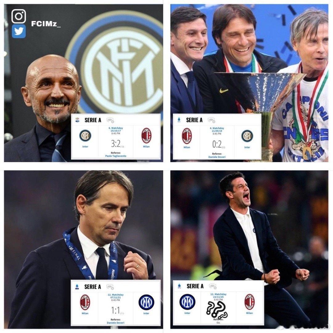 齐沃即将迎来自己执教生涯的第一次米兰德比 斯帕莱蒂和孔蒂在第一次米兰德比中都顺利拿下 因扎吉的第一次米兰德比则以平局收场齐沃加油吧🙏