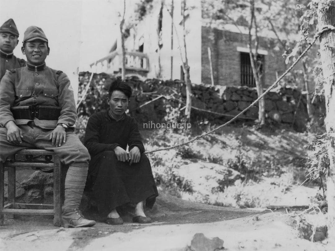 这张拍摄于1941年的照片,一名日本士兵身着军装,面带刻意的微笑,悠然落座于木椅之上;身旁的中国战俘神情凝重、肢体局促地蹲坐在地面,照片中日军的 “微笑” 是刻意摆拍,旨在营造 “人道对待战俘” 的假象,掩盖其反人类罪行。