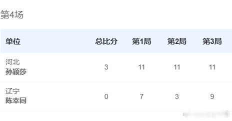 恭喜孙颖莎3-0拿下第四盘,河北队大比分3-1获胜