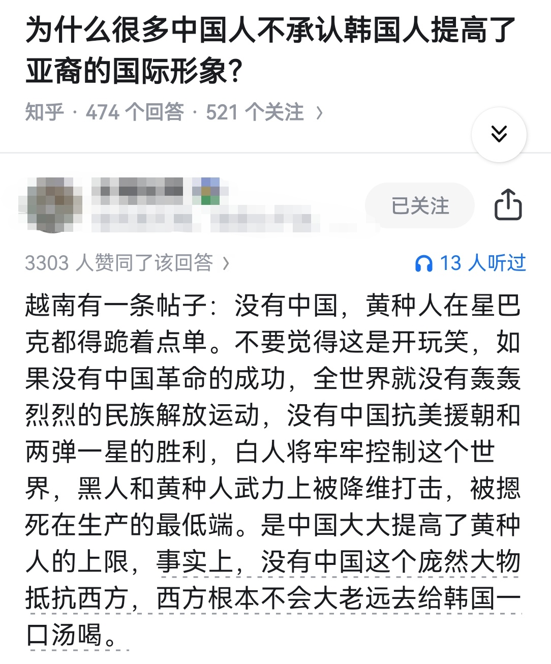 为什么很多中国人不承认韩国人提高了亚裔的国际形象?