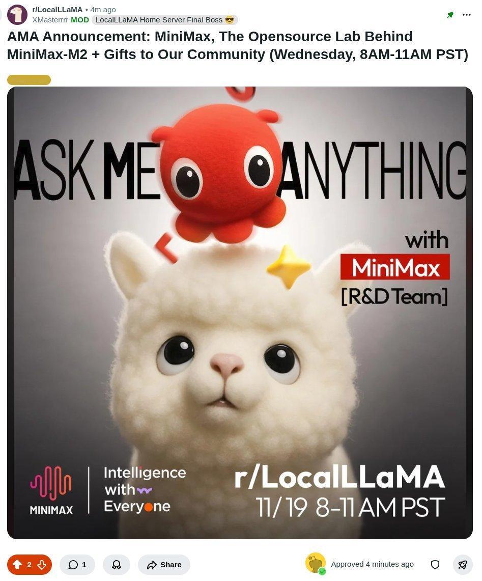 MiniMax也要做Reddit做一期AskMeAnything活动啦时