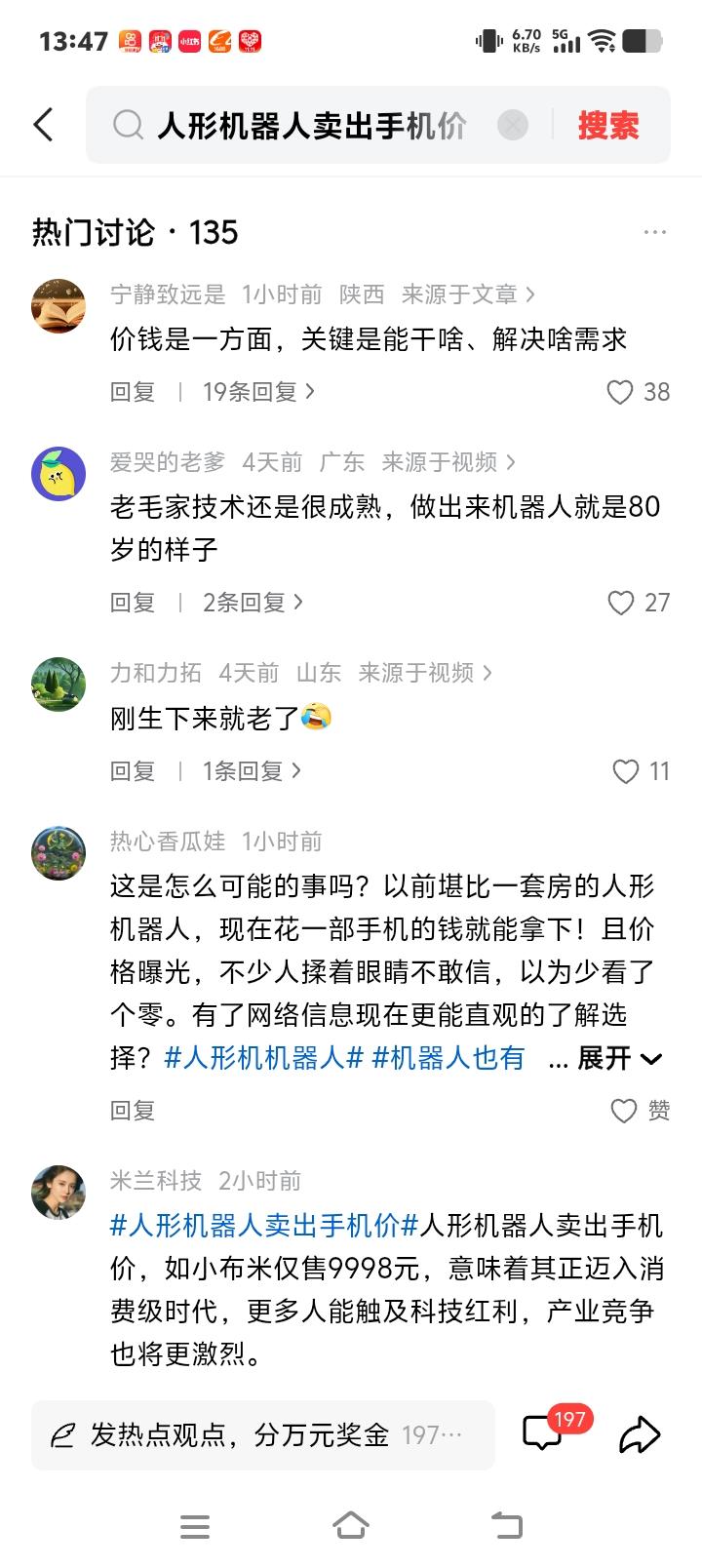 北京街头惊现万元机器人革命!中国智造正在改写全球科技格局 (来源:三里河) 当一台曾经标价百万的人形机器人,如今仅需一部手机的价钱就能搬回家,你是否意识到,我们正站在一场科技飓风的中心?从乌镇互联网大会的展台到北京中关村的体验店,中国企业用“价格屠刀”劈开了高端科技的壁垒,也让普通家庭触手可及的未来,变得前所未有的真实。 还记得那些年机器人只存在于科幻片的场景吗?它们曾是富豪的专属玩具,或是工厂里笨重的机械臂。而今天,松延动力的“小布米”以9998元的售价刷新认知,加速进化、宇树科技等品牌更是将入门级机器人压至3万元以内。这不仅是价格的“腰斩”,更是中国供应链与技术突围的集体宣言。 为什么机器人能突然“白菜价”?背后是一场持续十年的暗战。中国工程师们攻克了高精密减速器、伺服系统等核心零部件,本土供应链以高效和低成本重构了生产逻辑。松延动力创始人姜哲源坦言:“自研比例提升、材料革新、结构优化,让我们敢把价格打到底。”这背后,是国产工业机器人产量前三季度突破59.5万台的底气。 但价格战只是表象,生态争夺才是真相。加速进化CEO程昊一针见血:“低价是为了吸引开发者,谁定义场景,谁就掌握未来。”如今,Booster K1配套开发生态,“小布米”支持图形化编程,仿佛重现了智能手机初期的“系统之争”。而这场竞赛中,中国企业正用规模和生态复制新能源汽车的成功路径。 更令人震撼的是,AI为机器人注入了“灵魂”。智源研究院的Emu3.5多模态大模型,让机器人从“机械执行”迈向“智能交互”。它们不再需要预设千万种指令,而是能理解环境、适应需求。甚至有仿生机器人因动作太逼真,被网友误认为是“皮套人”,工作人员不得不在现场剪开腿部覆盖件自证——这戏剧性的一幕,成了技术成熟的绝佳注脚。 消费者的热情已被点燃。京东数据显示,近一个月智能机器人新品超百款,成交额同比暴增757%。从教育陪练到家庭服务,从科研展示到娱乐互动,机器人的应用场景正以裂变速度扩张。有用户调侃:“以前买机器人得卖房,现在买机器人像买菜。” 然而,狂欢之下仍需冷思考。价格亲民后,机器人的实用性与安全性成为新焦点。它能否真正理解人类情绪?会否替代更多工作岗位?这些疑问恰恰是行业进步的催化剂。正如一位网友所说:“当机器人学会做番茄炒蛋时,世界才会真正改变。” 中国智造的故事从不缺逆袭篇章。从“模仿追随”到“定义规则”,人形机器人的普及浪潮背后,是无数工程师夜以继日的攻坚,是供应链企业拧成一股绳的协作,更是国家对科技创新的长期投入。这场革命不再局限于实验室,而是涌向街头、走进生活,重新书写“中国制造”的价值内核。
