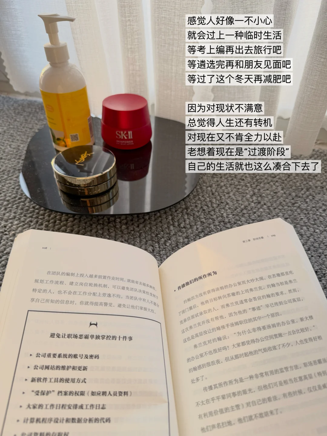 原来我们并不是非得达到某个目标,非得等待一个时刻,才拥有好好生活、重启人生的权力。当下就是我们正在流淌的生命[吧唧R]。像我之前一直想着整理家中闲置的东西,彻底来个断舍离,但不由会纠结万一以后用着呢,结果新东西买不进,家里也越来越满和乱。
