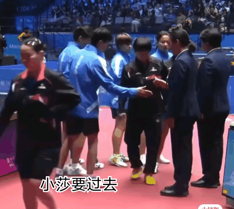 莎莎原地踏小碎步的样子太可爱了! 河北队和辽宁队打完团体赛,莎莎跟着佳佳就往外走。 佳佳过去了,莎莎却被和辽宁队握手的裁判挡住了。莎莎赶紧“刹车”,在原地踏起了小碎步。小黄鞋很是亮眼,踏小碎步莎莎的样子更是亮眼,太萌了,让人心生喜欢,不论你输赢!